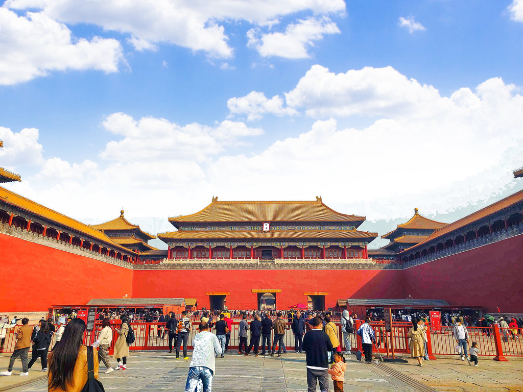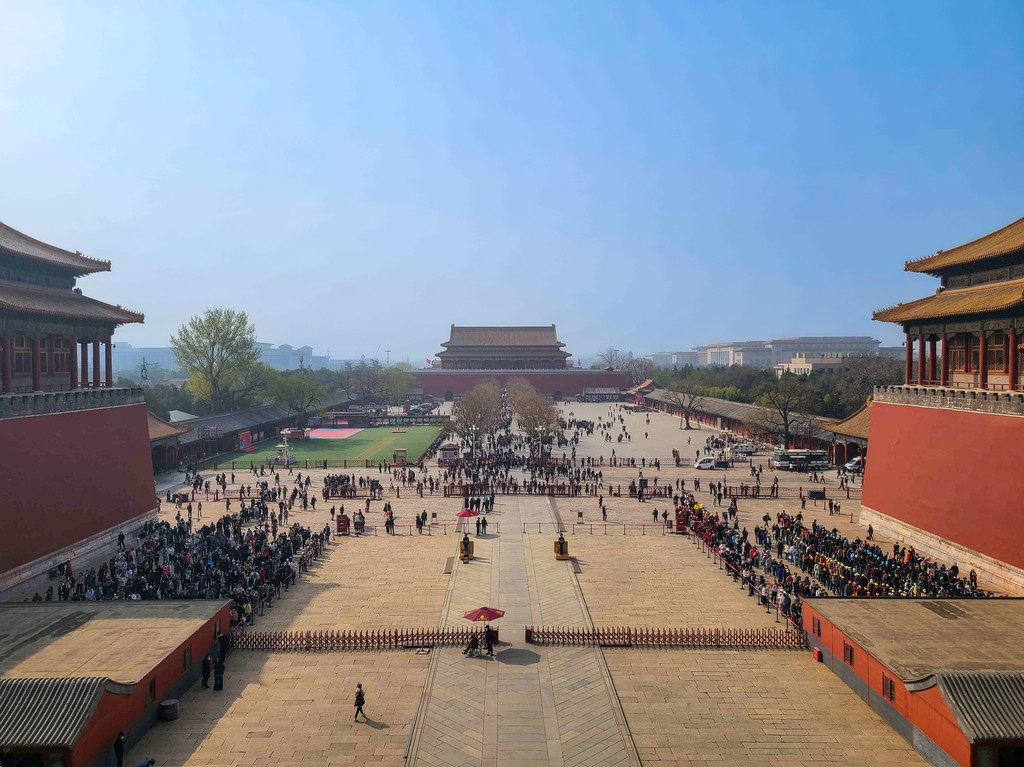 故宫每天三万名额,绝对天天爆满,无论如何取景,都是无数人影攒动。独辟蹊径,一早进午门,先在太和门广场拍照,再上午门城楼特展,下来后不走中轴线三大殿,去东侧的文华殿、奉先殿(钟表馆)、九龙壁、宁寿宫(珍宝馆)、东六宫。午餐在故宫冰窖用膳。接着是武英殿(瓷器展)、慈宁宫、西六宫、御花园。休息一下,3点左右旅行团陆续撤出神武门后,最后反向御花园-后三殿-前三殿,人越来越少。
