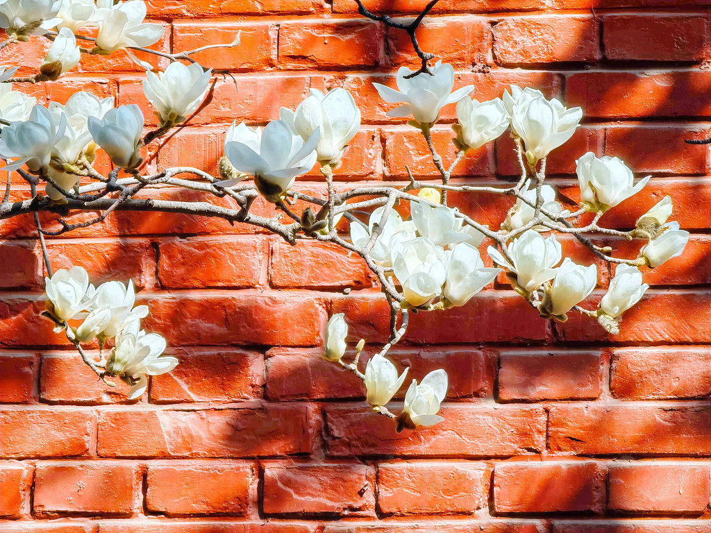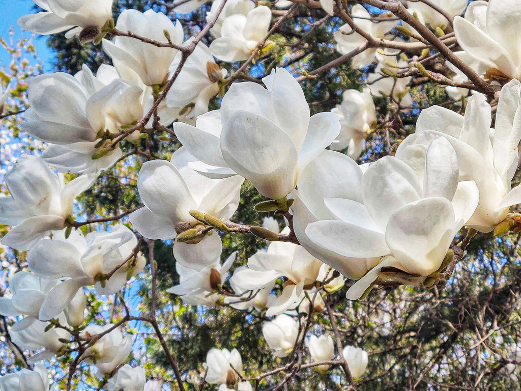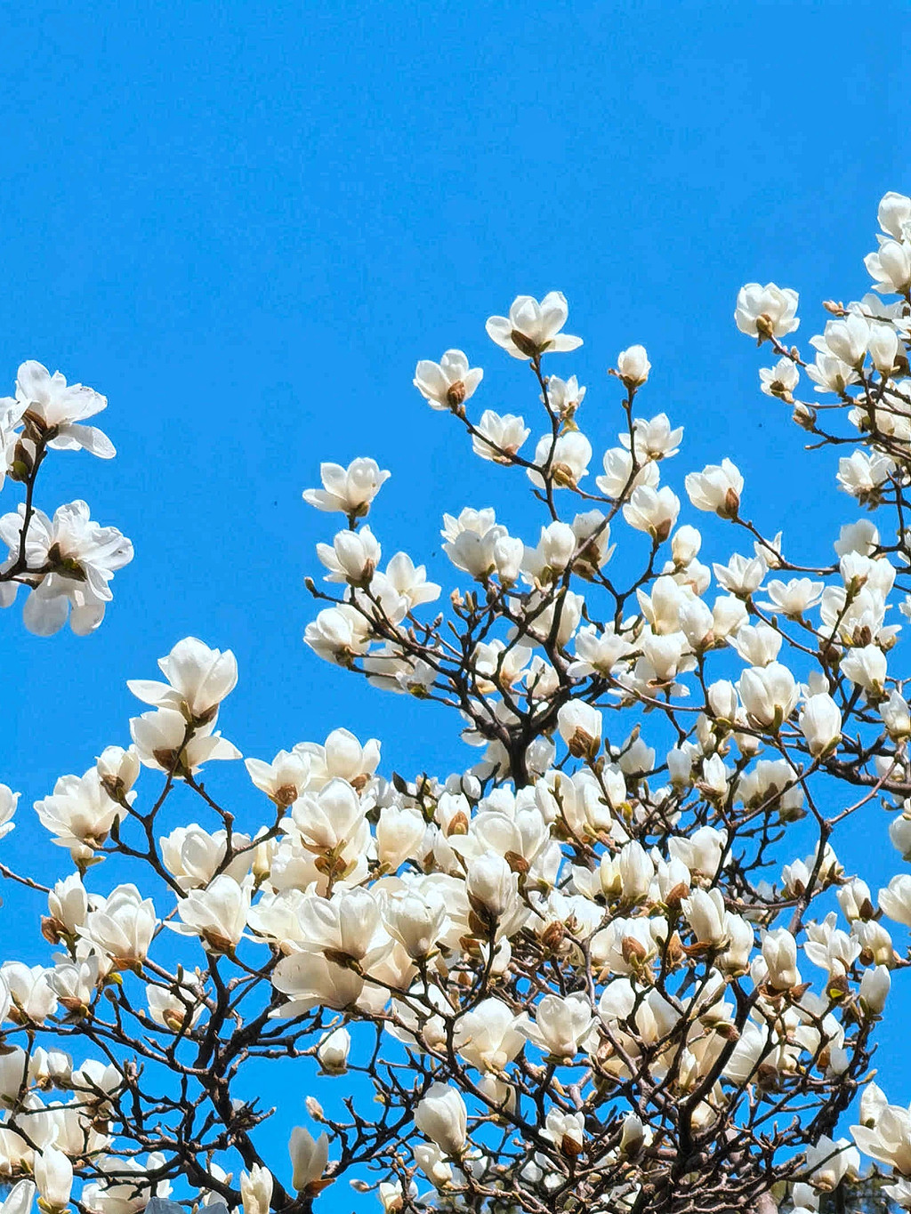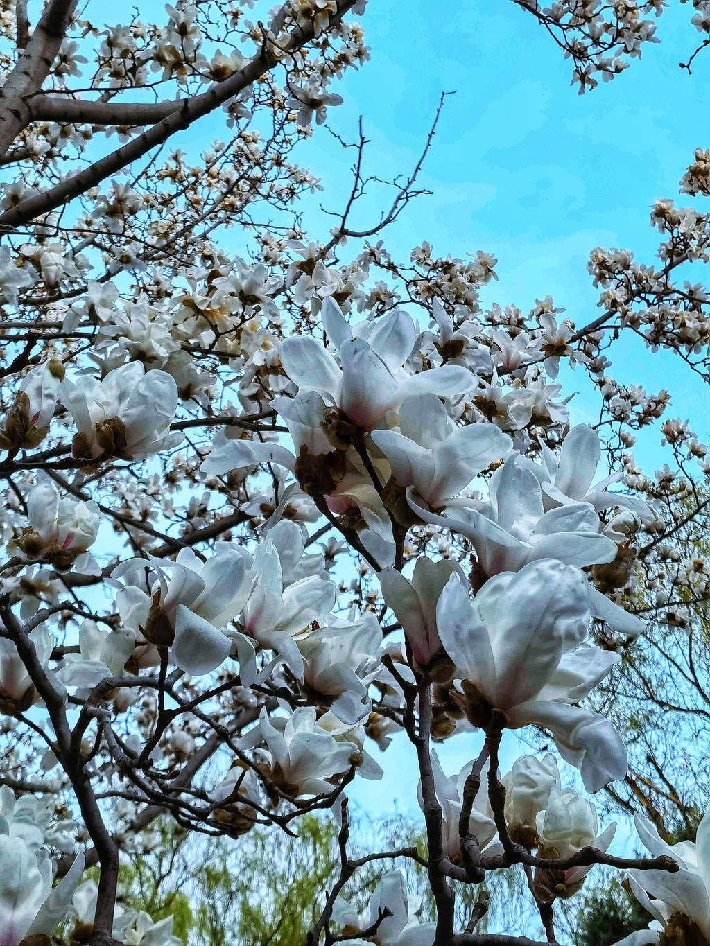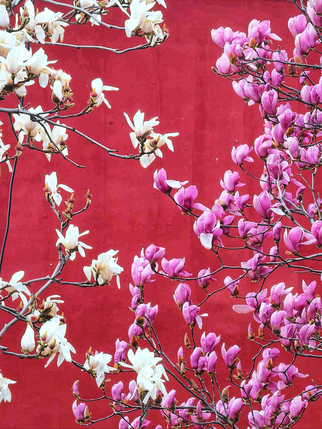 名为赏花,但这蔷薇科的花属外形也太相似了,尤其是白色、粉白、粉红的早樱、山杏、梨花、山桃、碧桃、榆叶梅,傻傻分不清。海棠四品也凑热闹,亲生儿子垂丝和西府却是苹果属,区分要看低头抬头;乱入的贴梗和木瓜反而有了木瓜海棠属的名分。还是玉兰好,或“刻玉玲珑,吹兰芬馥”,或“紫粉笔含尖火焰,红胭脂染小莲花”,一眼就能分辨。