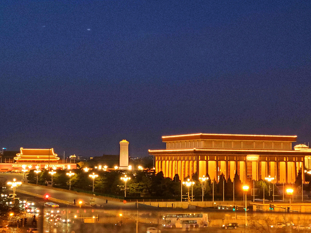 参观完毕是从国博正门出来的,可以在国博台阶上从高处拍摄天安门广场,在人民英雄纪念碑侧方向。有当天国博或故宫预约记录的可以单方向进入天安门广场,不需要单独预约天安门广场。所以,如果不参加升降旗,进入天安门广场最简便的方式就是国博参观完毕后直接进广场,可以免去多次严格的安检和排队。