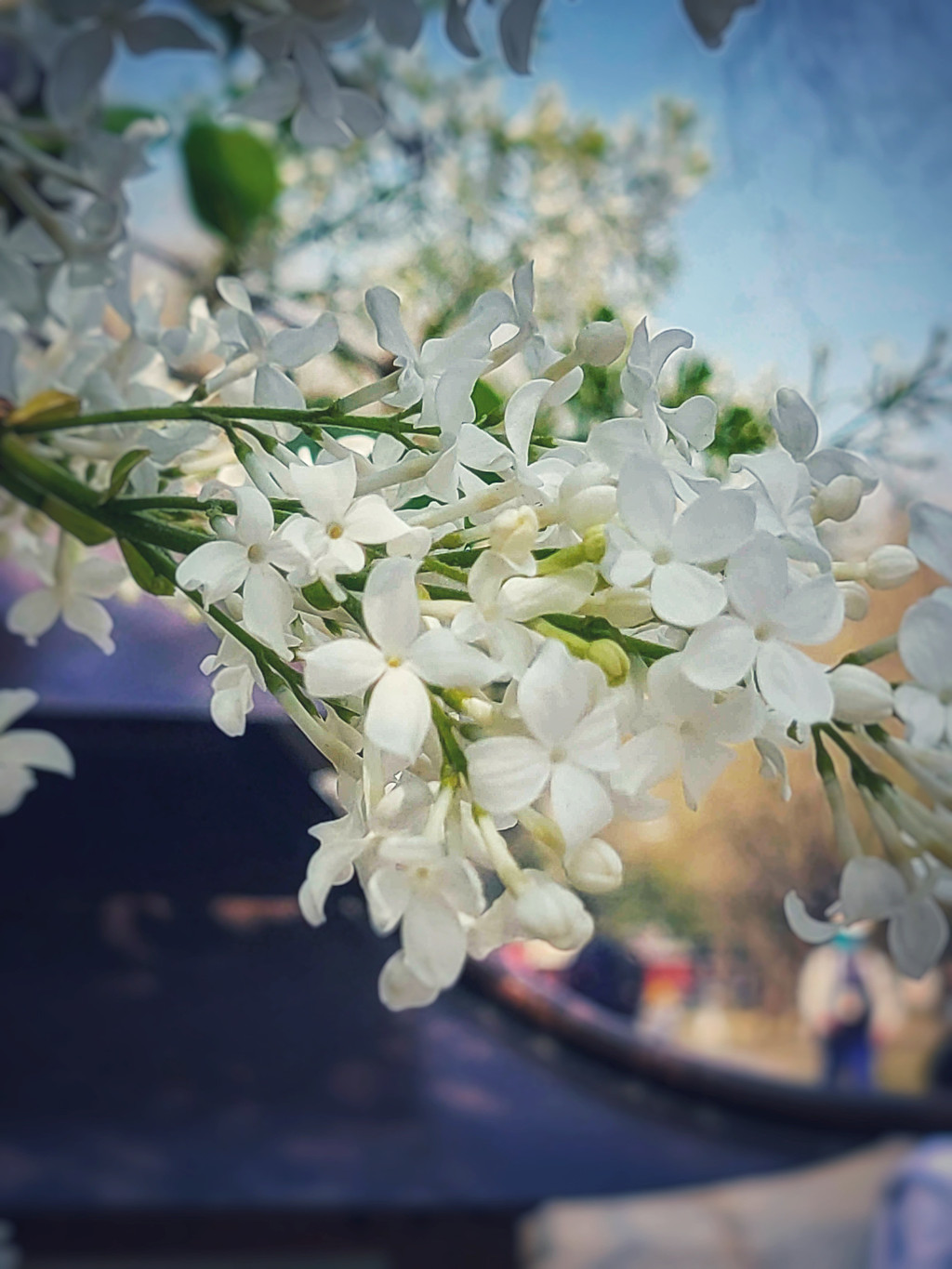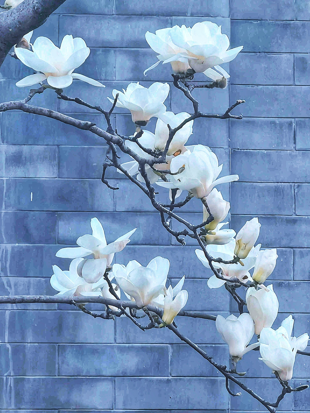 意外发现附近一个院子内白玉兰开得正灿烂,棉花似的雪白一片。