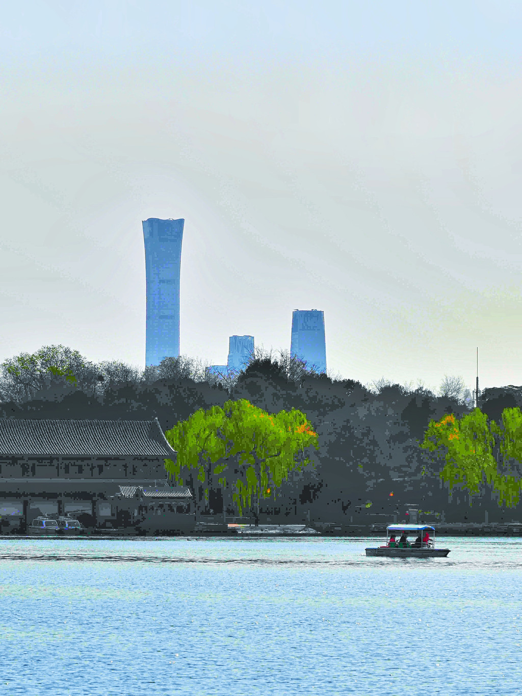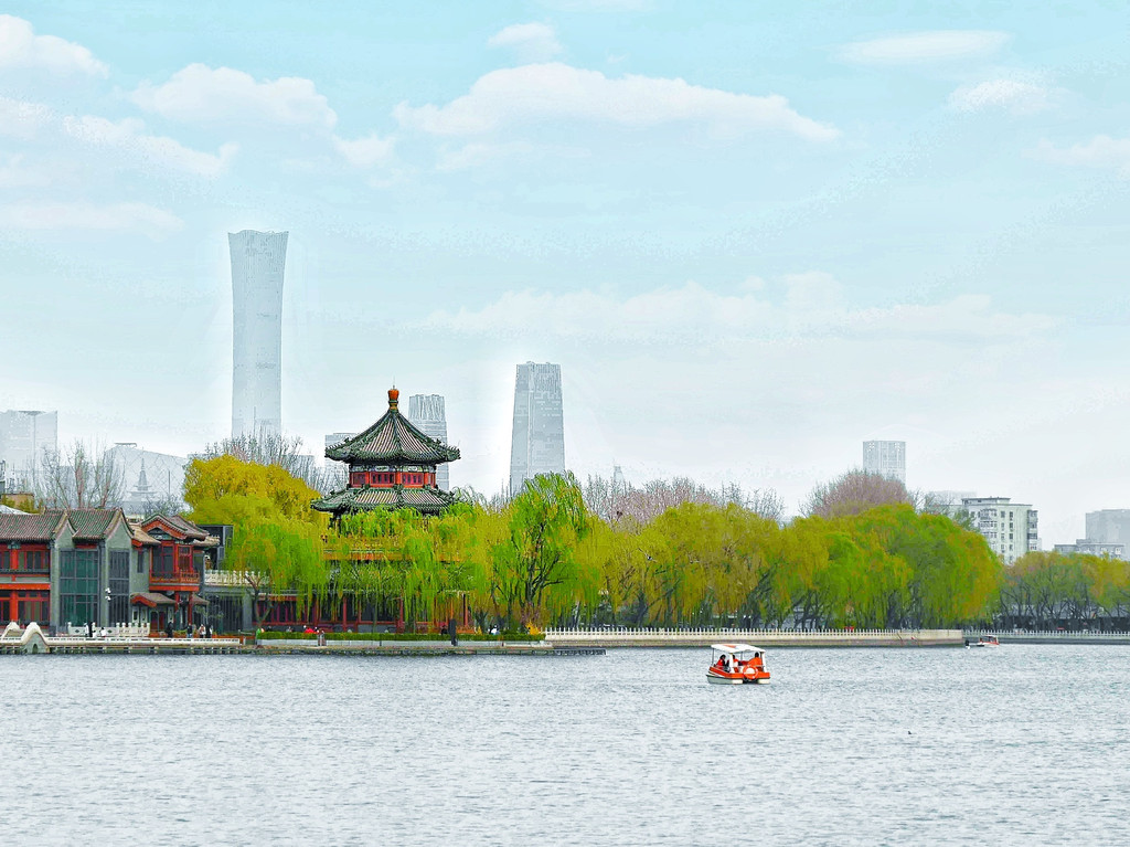 什刹海骑行一周,“中国尊”机位找到了,昨天扬沙的余威仍在,但这个能见度也很满意了。