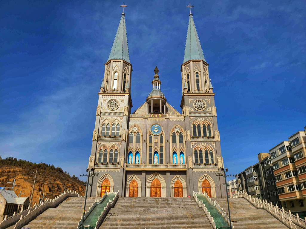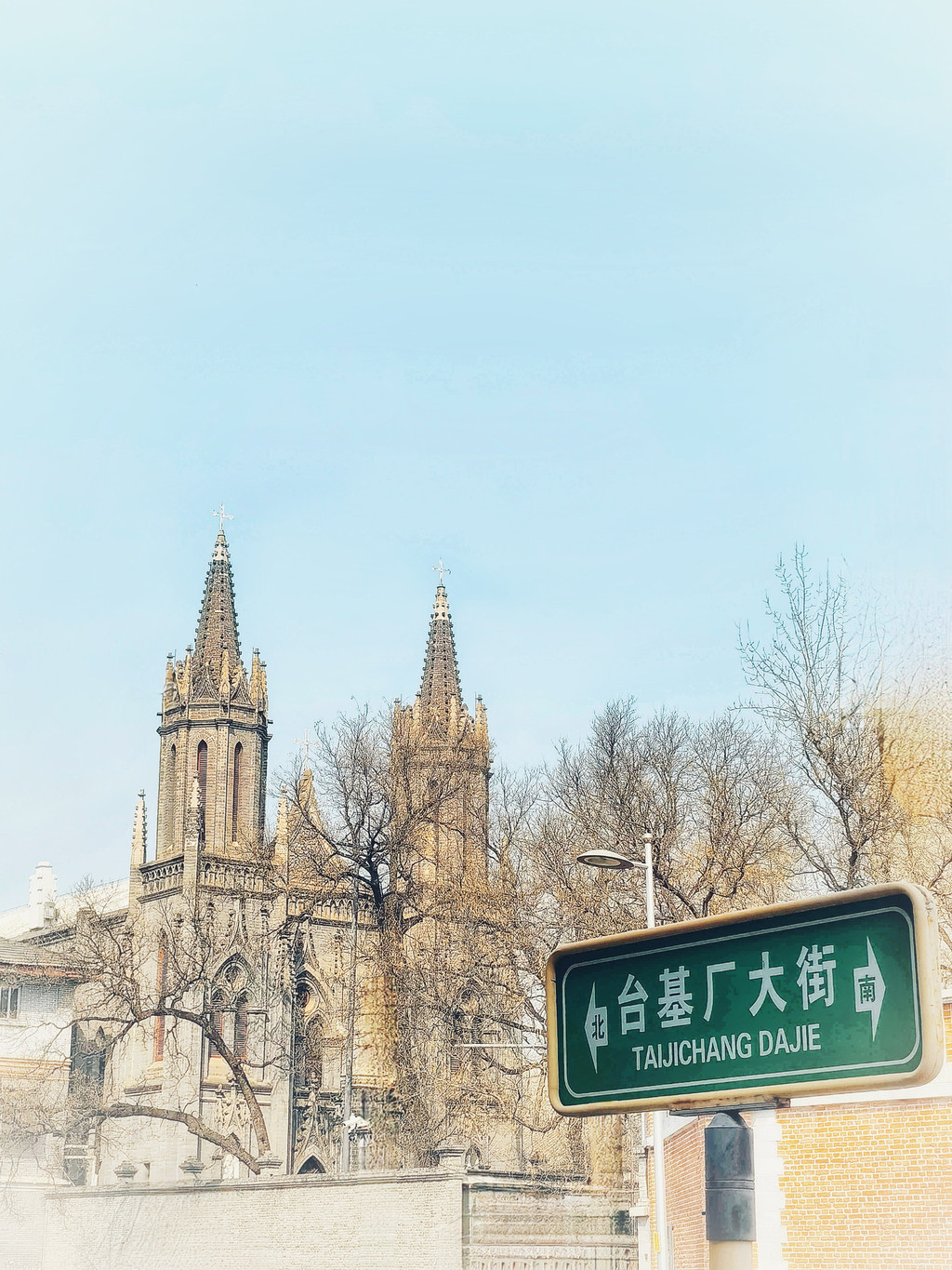 下了雪峰,还有半天空闲,决定到崇礼城区逛逛。崇礼城区不大,人不多,很干净,据说是按北京的环卫标准执行的。主要围着城北的西湾子教堂转悠。