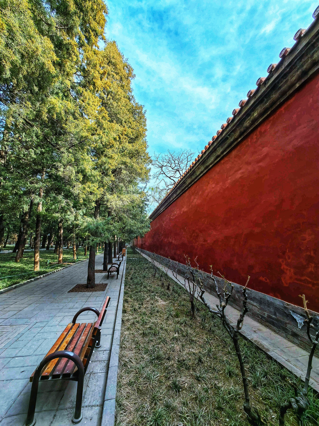 中山公园的红墙也很有feel。社稷坛、中山堂也能拍出氛围感。