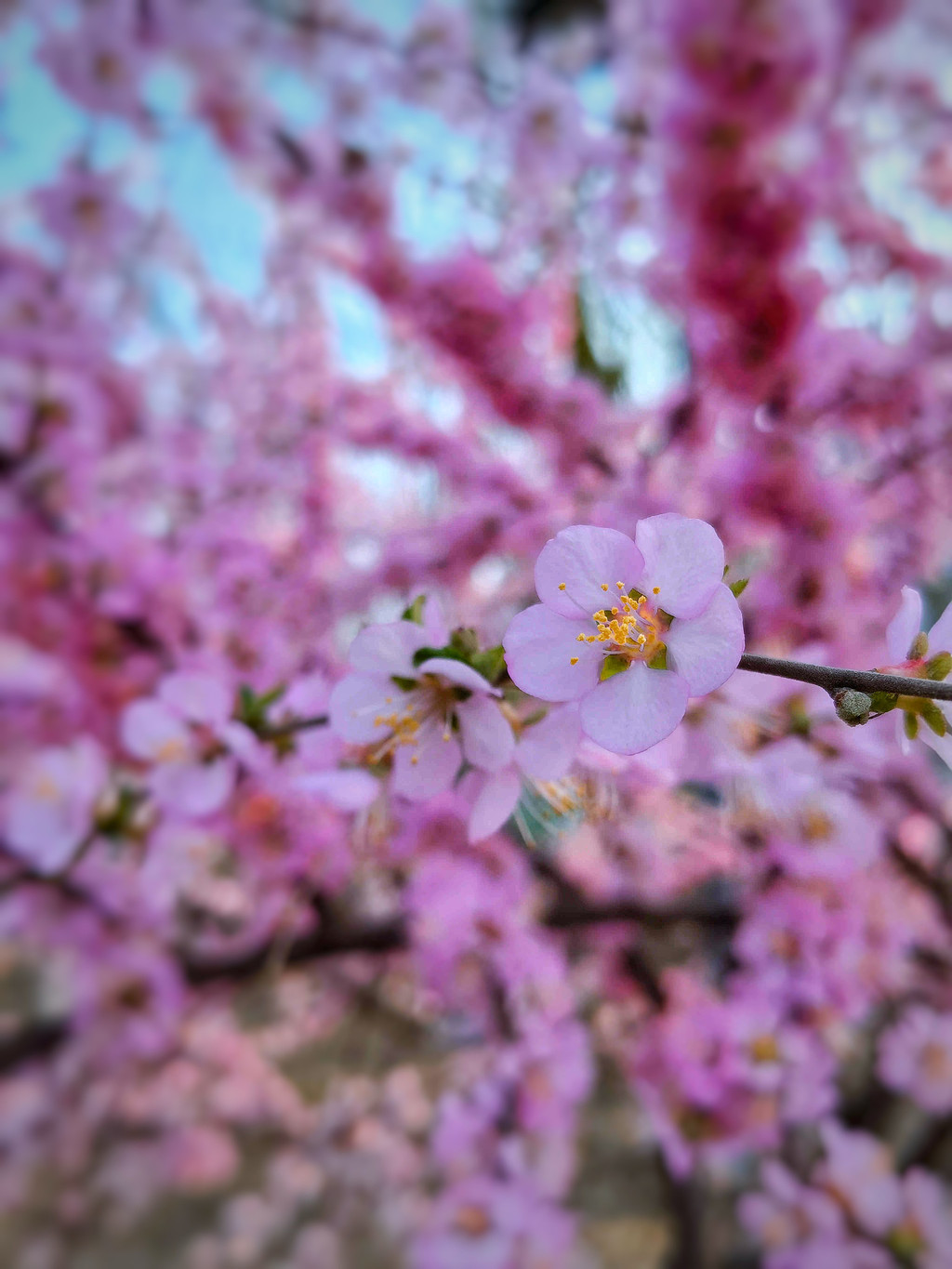 西堤山桃还是晚了一周,只剩零丁几枝。