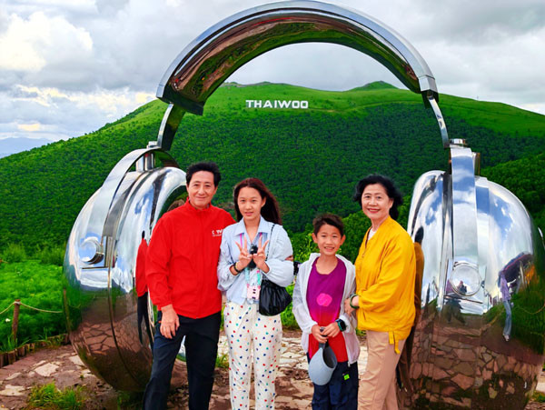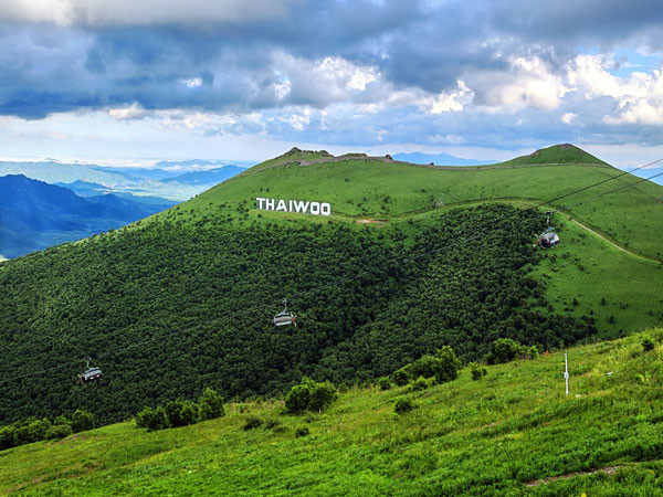 特别是位于绿色山体上白色的:THAIWOO几个英文大字格外醒目,感觉与美国洛杉矶影城山体上的好莱坞HOLLYWOOD地标,有着异曲同工之妙。