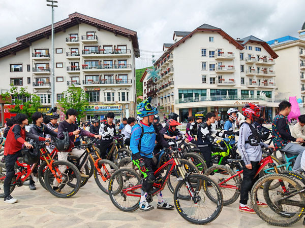 走进富龙小镇,犹如置身于欧洲童话世界。这里的欧式建筑错落有致,红顶白墙与青山绿水相互映衬。中心的人工湖碧绿清澈,周围环绕着观景平台和休闲座椅。在索道入口处,记者看到众多的自行车爱好者排队准备登山。