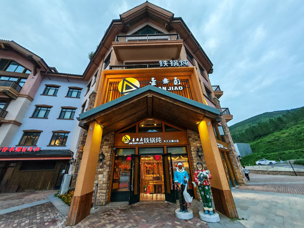 特别是在太舞小镇,美食是其中一大亮点。这里有各种风味的餐厅,中餐、西餐、烤肉、涮肉等应有尽有。由于到此时已近傍晚,没逛多久,就华灯初上时分了,于是,当晚我们一家在金叁角铁锅炖用了一段东北风味的晚餐。
