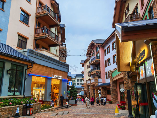 漫步太舞小镇中,仿佛置身于一座北欧风情的童话小镇。这里的建筑风格独具特色,以北美风格为主,红顶木屋错落有致地分布在山间,与周围的青山绿水相互映衬,美不胜收。街道两旁是各种特色店铺、餐厅和酒吧,充满了浓郁的度假氛围。