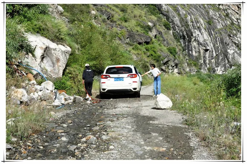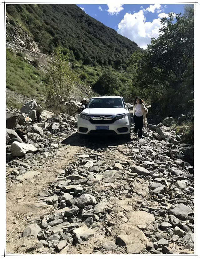 回去的路上再次过碎石坡,刚才是下坡,这次得上坡,我们下车来,尽量减轻车子重量,师父踩了油门冲坡,没有冲上,退了下来,开始找各种石块来填坑,暮归的老牛来看热闹,慢悠悠踱着步,还时不时停下来观察一番。等待牛群过去,再次冲坡,我们等在一边,车子上来推一把助下力,结果还是停了下来,拐弯加冲坡,不是一般的难度啊。再检视地面,搬石填坑,师父将车子退得更后一点,油门踩得更大,第三次轰鸣声中尘土飞扬,终于冲了过去。历了艰辛的过程,更觉得康庄大道的幸福。