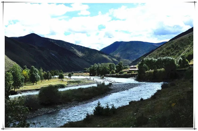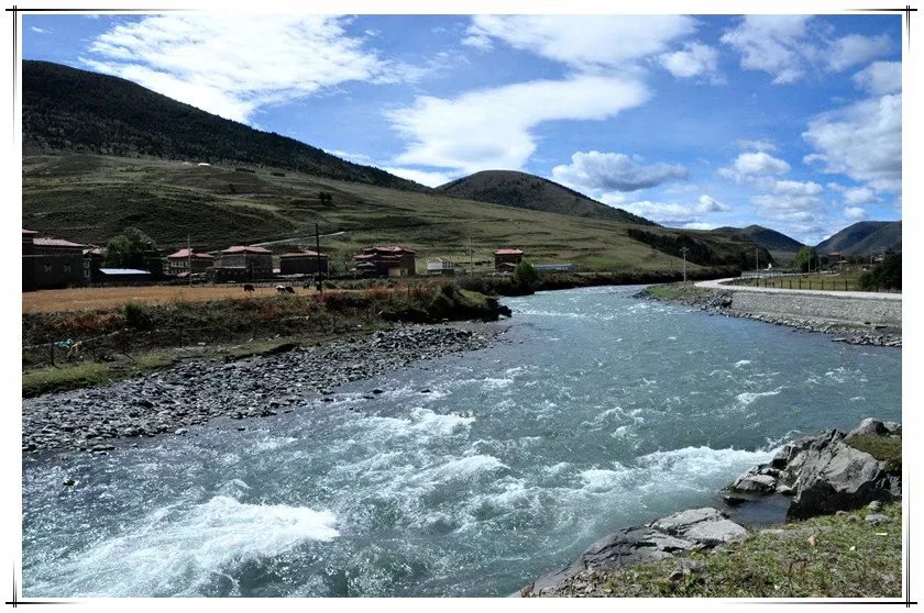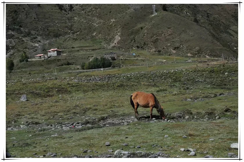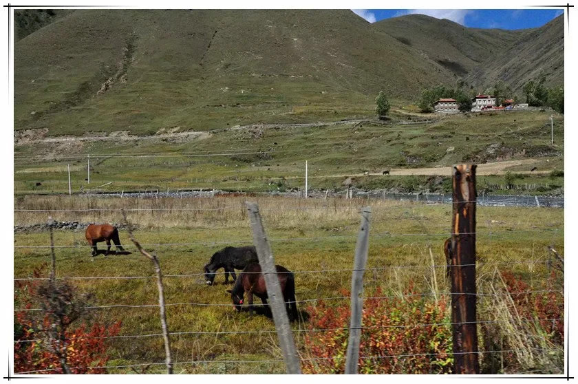 草原还是这个草原,山势起伏,草还是青色,红色的藏家小楼,有蓠芭栅栏围着,流水潺潺成溪,牛羊马儿悠闲觅食,一首宁静的牧歌……