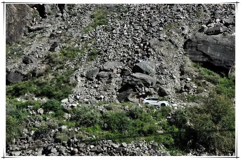 山坡上还有小石块在滚落