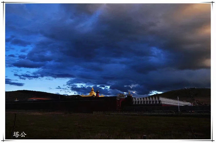 到塔公已是黄昏,路的两旁停满了车,人还是蛮多的,塔公佛学院和木雅大寺我们都没有去,只是远观,恰巧华灯初上,斜阳穿透云层,打在雅拉雪山上,总算让我觉得塔公还是不错滴。