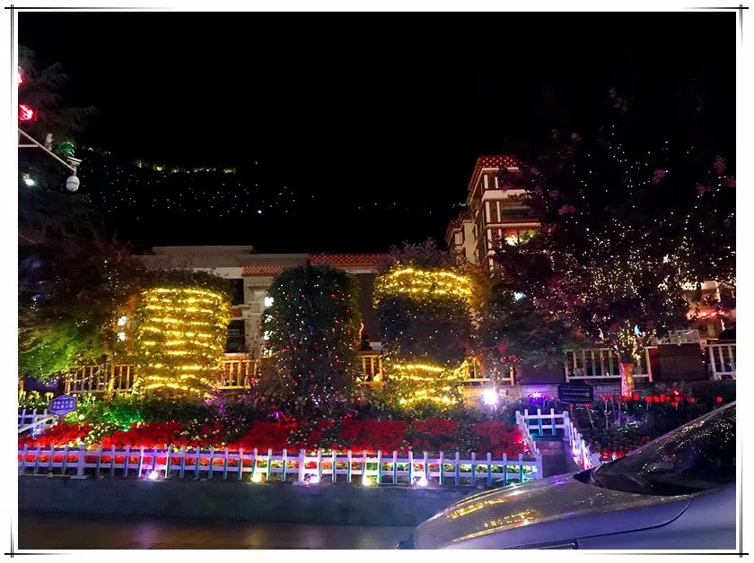 夕阳一落,夜很快就来了,塔公到道孚需要开车2个多小时,只能在八美住宿了,节日期间,热门地方,找住宿很是悲摧,问了几家都没有房间了,可以住帐篷,260元一晚上,当然,设施之类的就免谈了。最后找了一家还有两个房间,没有卫生间,公共卫生间离主屋还得走过一截,280元/间,店主也坦然,说,平时也就是七八十吧,谁让是这个时候呢。好吧,隔壁那个香格里拉酒店,刚才在携程看了,一晚上是1000多,去上个卫生间总可以吧,谁想,走进大堂那个卫生间立马退出,还不如去野地里那个公共卫生间,店主刚刚答应了去冲洗一下,嗯嗯,两旁还有格桑花相迎。还好店主允许我们用他们的厨房水池洗漱一番,居然还有热水,都生出幸福感来了。