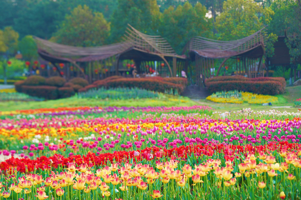 踏入景区,不远处就是24万余株五彩缤纷的郁金香,现已盛开。绚烂多姿,仿佛走入现实版的莫奈油画。