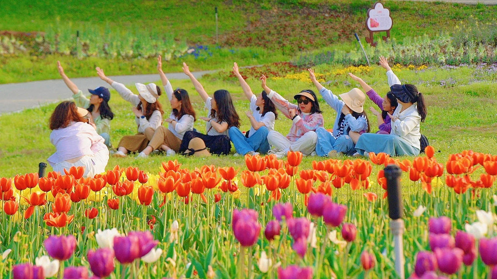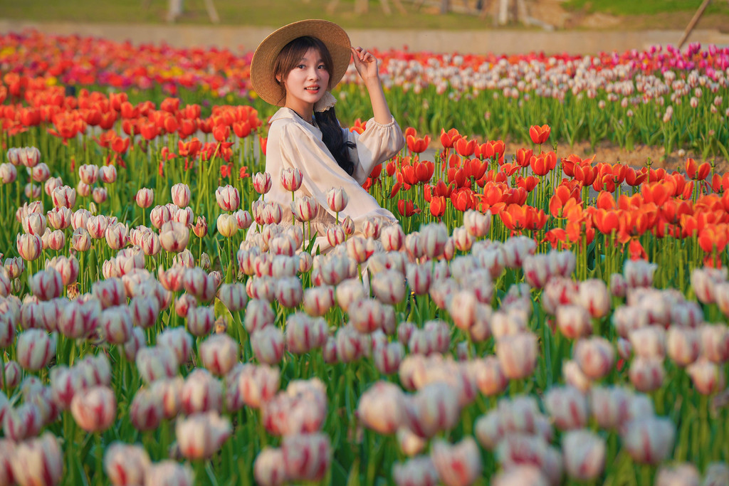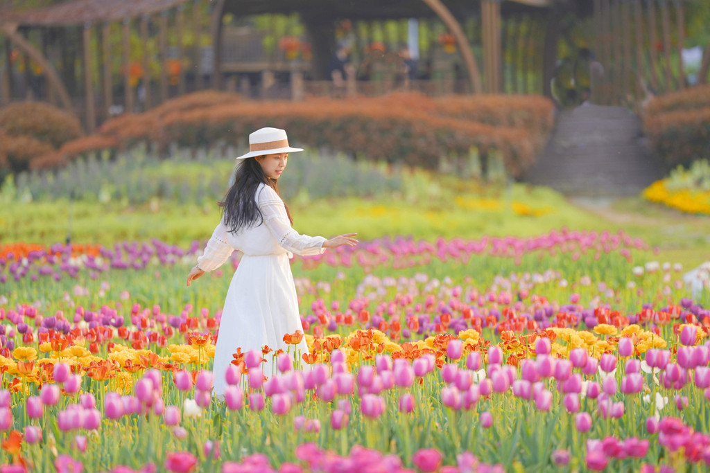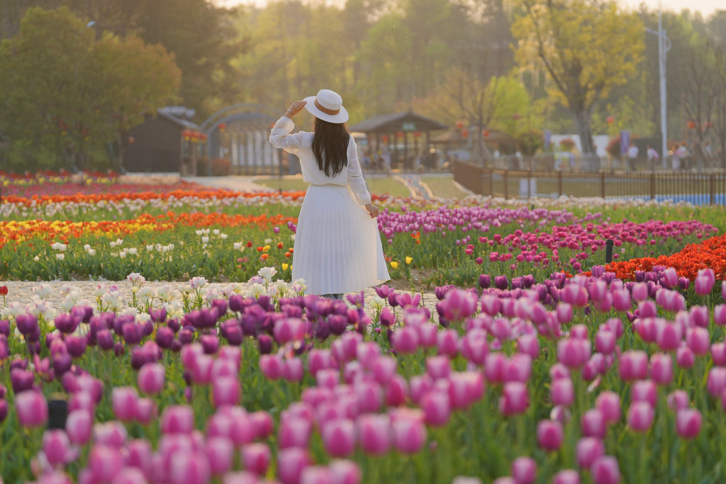 不少游客专为此来拍照。在这片花海中,无论是远拍还是近摄,都能捕捉到令人惊艳的画面。穿上心仪的连衣裙,与郁金香们合影,留下专属于这个春季美好的回忆。