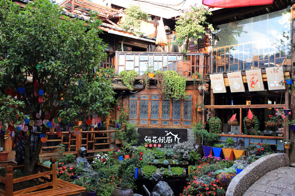 此次去丽江是为了徒步,听说虎跳峡徙步不错,下飞机后入住一觉2点就疼醒来,发现胳膊根本不能动了,看来第二天的徙步是泡汤了,于是第二天上午去丽江人民医院看医生,说是肩周炎,开了点止痛药与膏药,只能先去印象不错的黑龙潭看看再说,顺着丽江古城的水流走过来,发现一切都变了,水更美,古城不仅到处是花,而且装扮的细致有韵味,真是惊喜,分享给大家。
