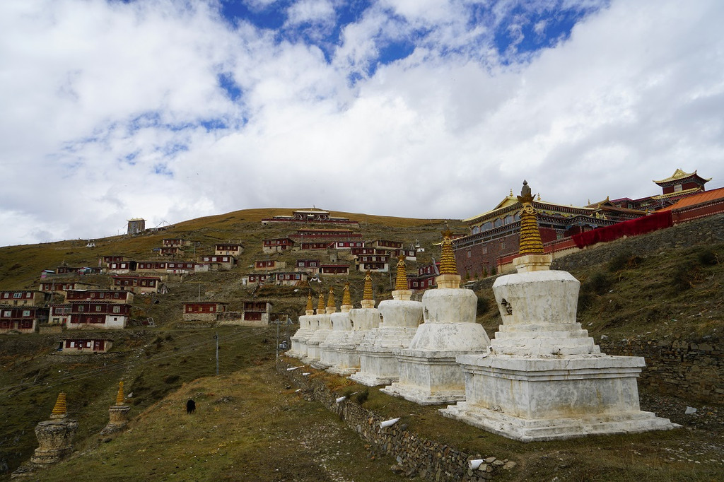 色达,不止佛学院,还有东嘎寺。东嘎寺建于十六世纪初,有500多年的历史,是黄教扎什伦布寺的分寺,位于金马草原上。
