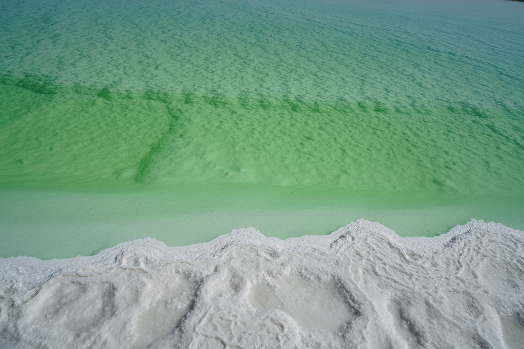 茫崖翡翠湖,规模比大柴旦翡翠湖要大,开车逆时针绕行一圈,各种绿色映入眼中,盐池深浅不一、形态迥异,纯美剔透,如同镶嵌在戈壁上的翠玉,是名副其实的翡翠湖。