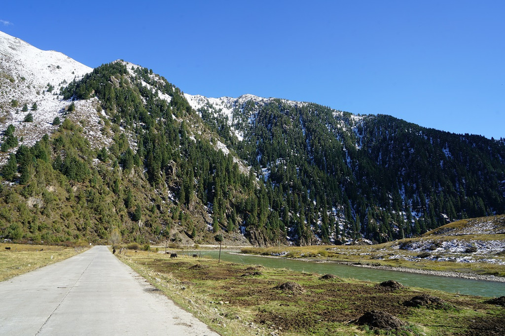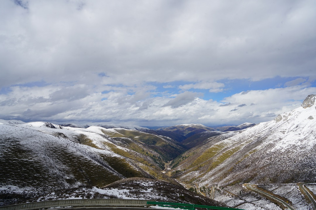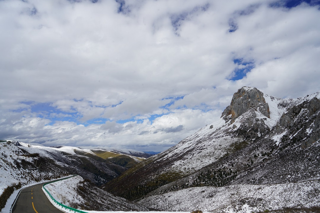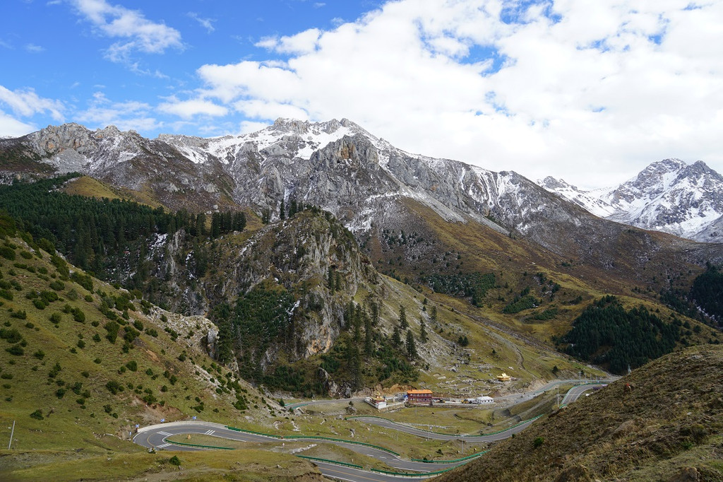 一路翻越了好几个海拔4千以上的垭口,山上积雪覆盖,山下树木青翠