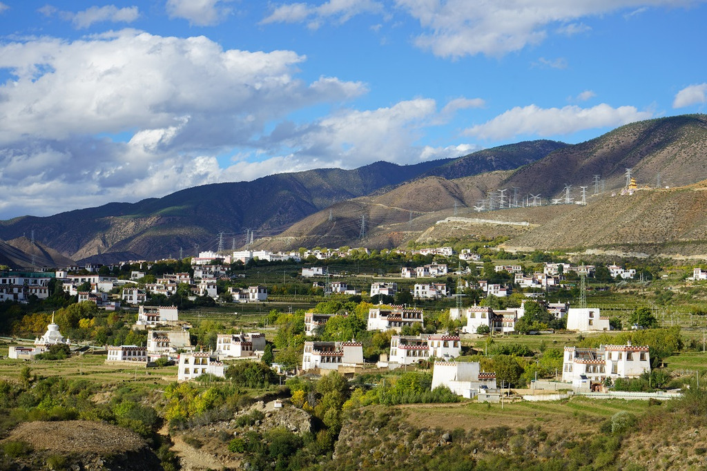 进入乡城,沿河两岸的的白色藏房,素有“白房子”之美誉。