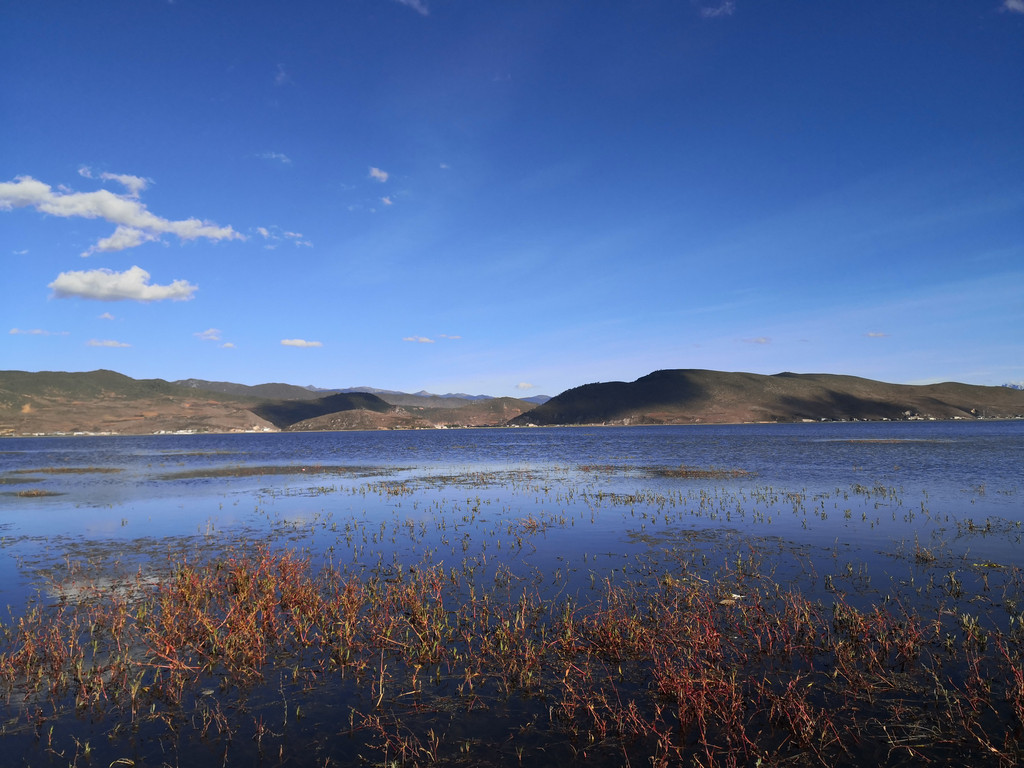 从香日满转入德马高速后,眼前一大片湖水,还看到了那一片标志性的红草滩,那就是冬给措纳湖,整个湖边几乎没有游客,湖面安静。湖边的红水草是矮矮的一种不起眼的小草,红得那么艳,好似地面上铺了一张绣花地毯。
