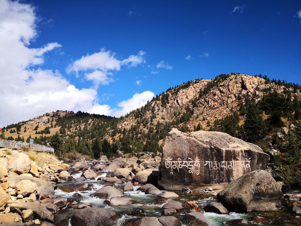去稻城亚丁的道路修的极好,一路都有标识牌提示,不会错过任何景点