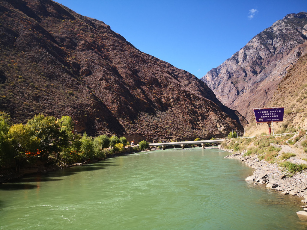 从乡城往云南迪庆的香格里拉,走一条新修的公路,沿路碧绿的河流相伴