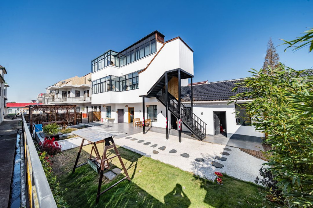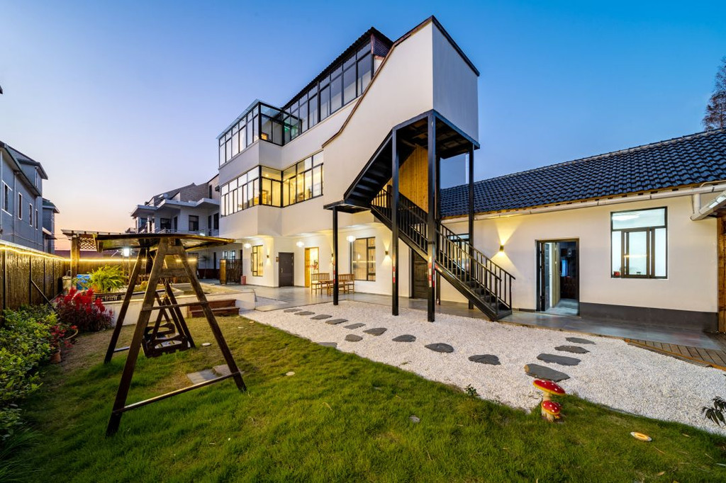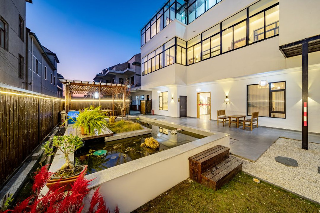 江林曼居民宿是由店主陆先生的老宅改造,历时一年的时间,为您打造了这样一栋白墙灰瓦,古朴典雅的别墅庭院。推开木门,沿着石子铺就的小路走进民宿,扑面而来的便是一种现代与古典的碰撞感,精美的小院子内设有秋千、凉亭、水池,每一处都是让人沉醉。