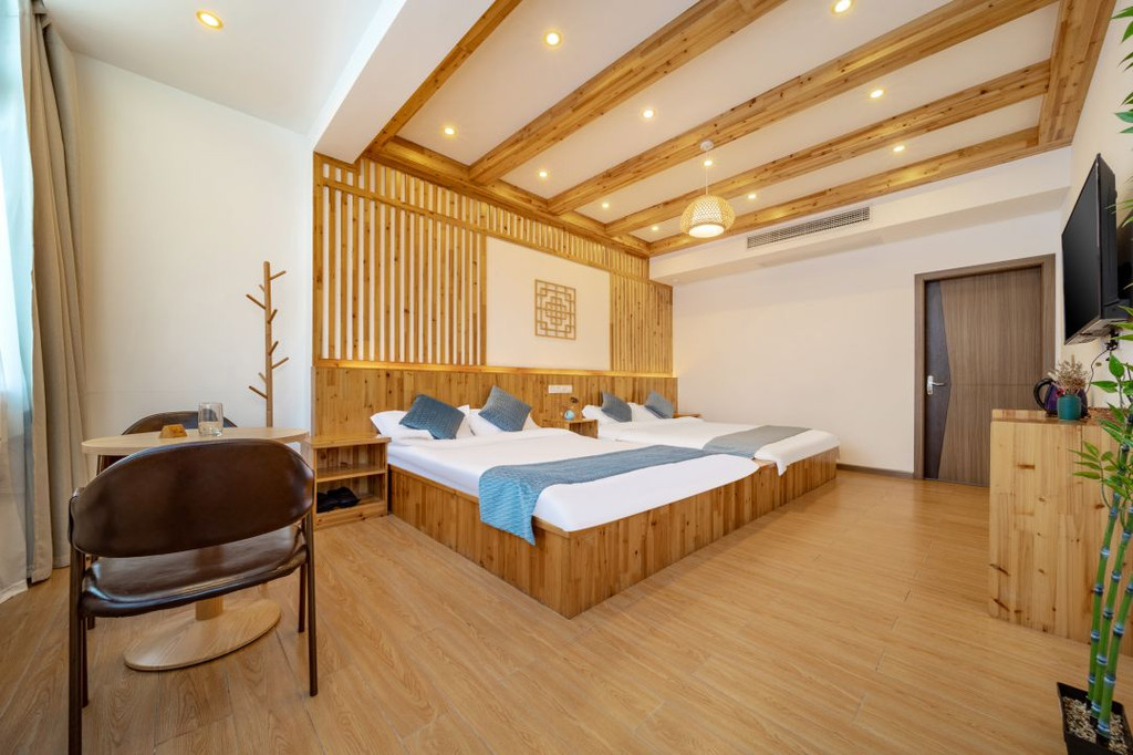 7间装潢精美的客房给人家的温馨感,3间双床房、4间大床房,可同时容纳16人入住、就餐。整体田园风情装饰,各种硬件设施齐全,设计清新简约,充满舒适与轻松。