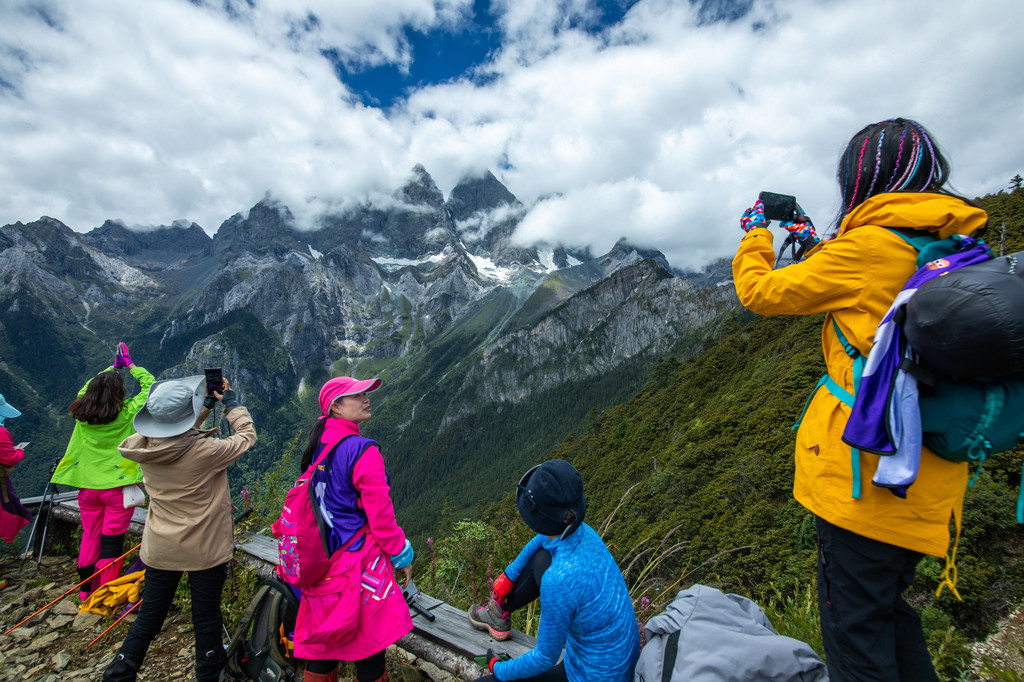 这是一座天然天然形成的佛塔,运气好才能看到全貌!香巴拉佛塔阴晴变幻无常,从山下向上望去,雪山乍隐乍现,犹如“犹抱琵琶半遮面”的女神。