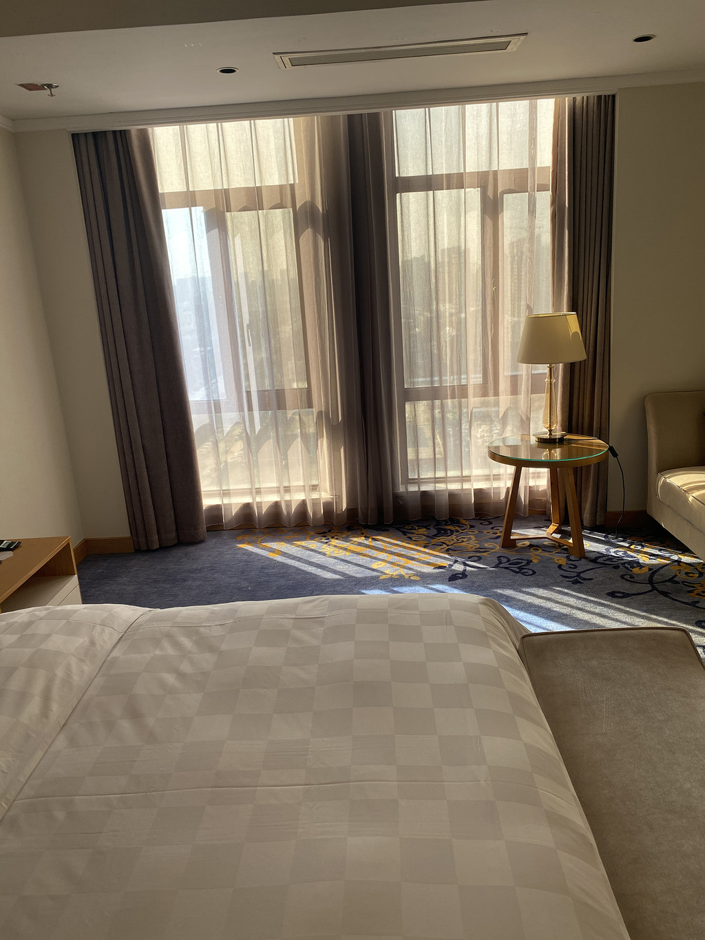 每次出差酒店都得找好久,还得适合自己还要价格优惠,去年出差来丰县经朋友介绍丰县新开的那个蓝海不错,价格还不贵,所以就抱着试试的态度入住了蓝海,真心的不错,住过一次真的就喜欢上了蓝海的客房,不管是环境还是服务真的挺不错,给人的感觉从进门开始就一直有人在服务,停车场也够大,不用每次停车都得转着停车场绕几圈了,住了一次他们就记住了我的一些习惯,我是比较出门觉着不适应天气的人,冬天出门就会觉着空气很干,上次给他们要了一个加湿器放在床头,这次入住他们提前帮忙准备了,还准备了水果,真心不错,让他们帮忙准备个采光好的房间,我感觉房间采光不错,休息的时候拍了几张照片。