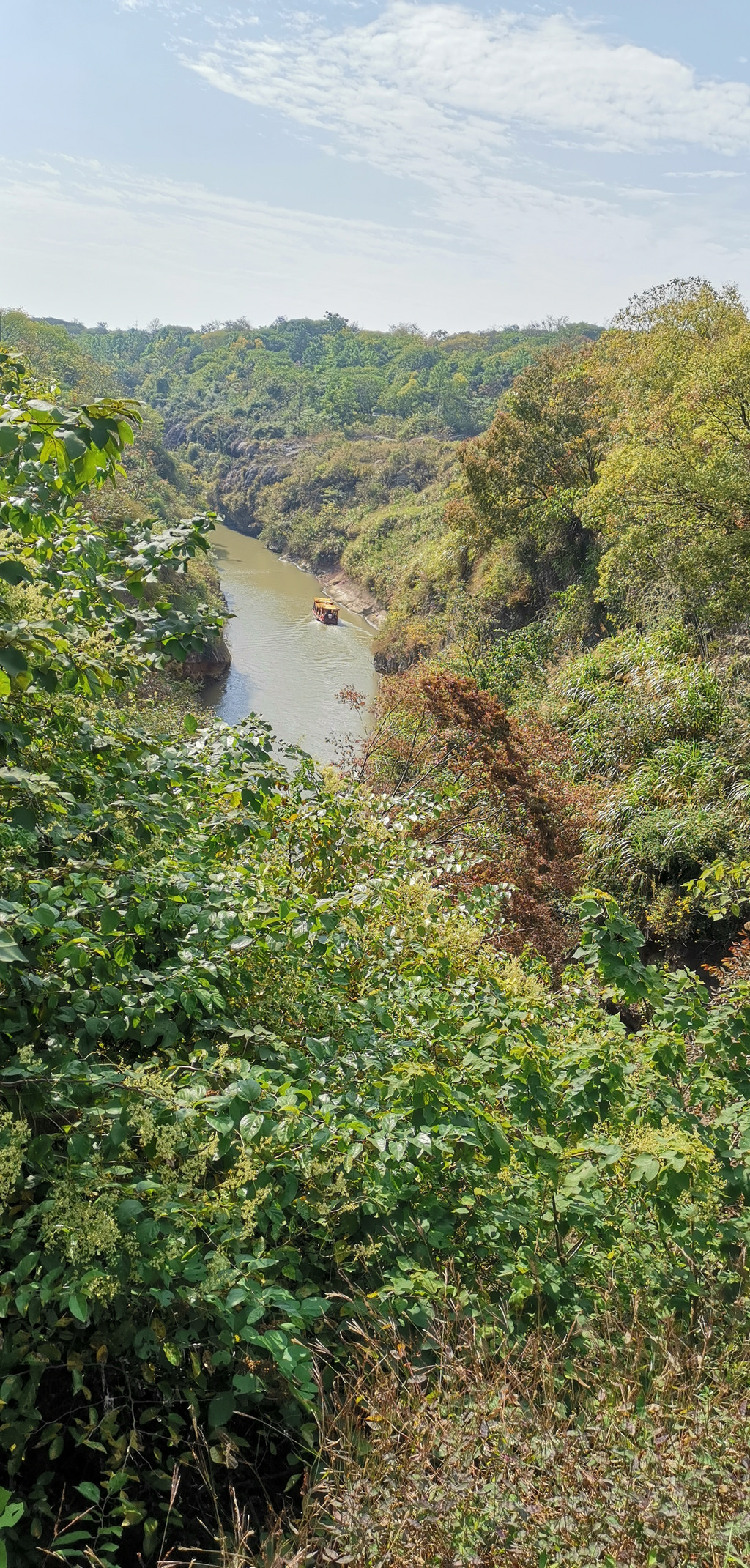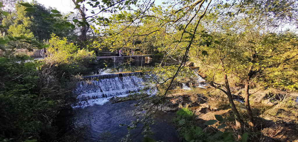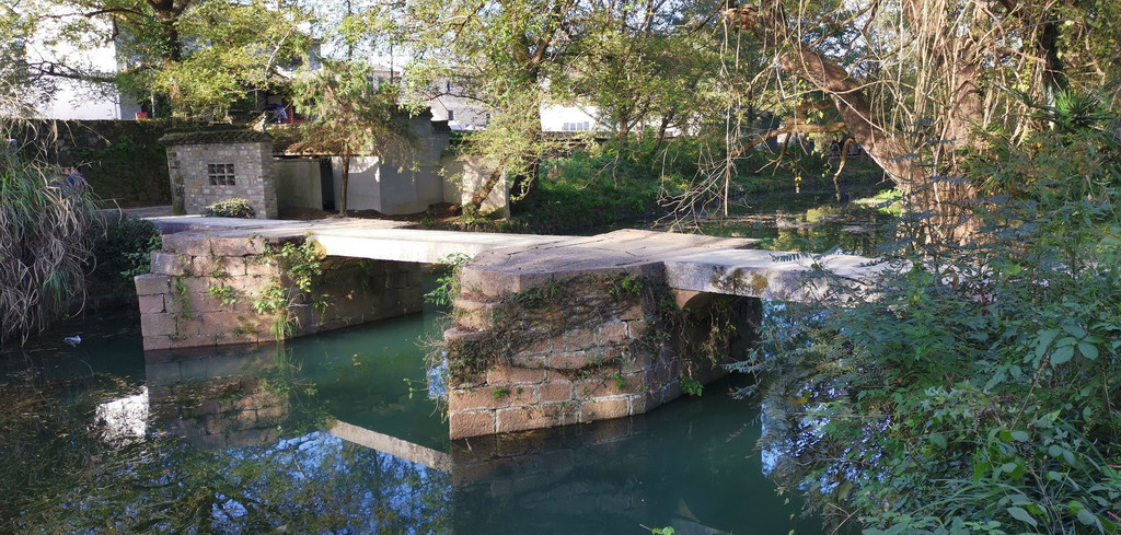 此为天生桥。河成之后,将一巨石下方凿开,石下可通舟楫,在人工运河上留石为桥,实是当年工匠们的创举,可惜南桥早在1528年崩塌,此处为仅存的北桥。