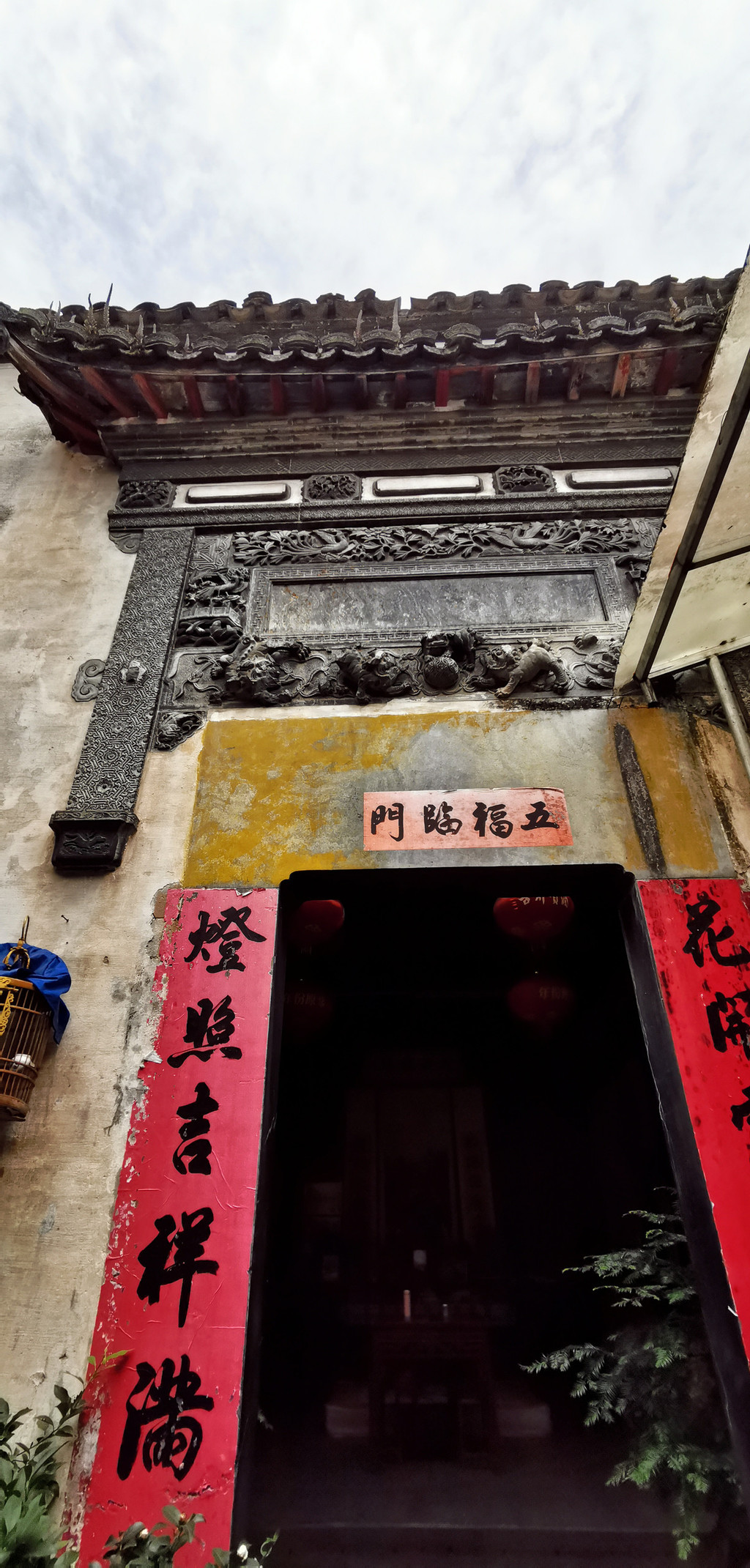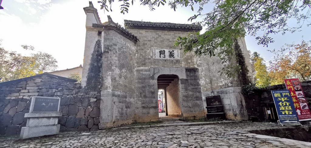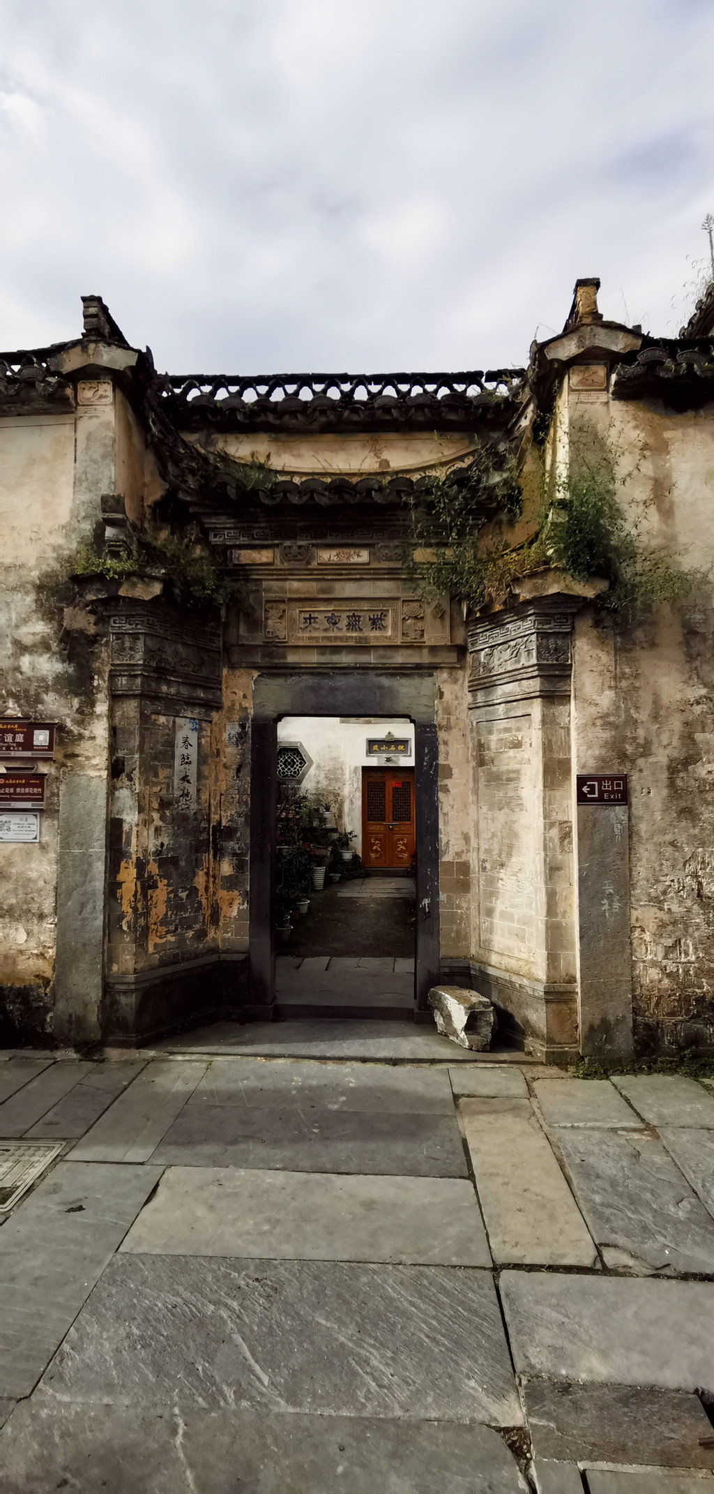 身在徽地,满目皆徽派建筑。一般门户所特有的门脸,八字门,砖雕石雕、飞檐拱瓦、防火墙。