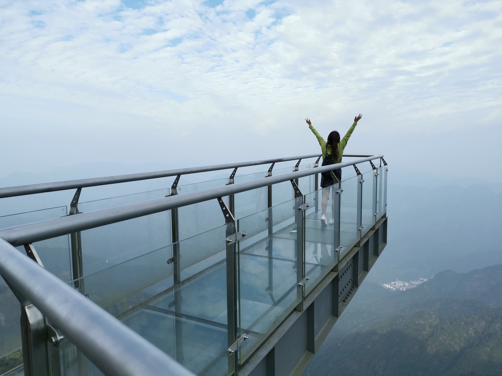 里面是原栈道,外面是玻璃栈道,一百多米,皆可通行。走玻璃栈道15元。