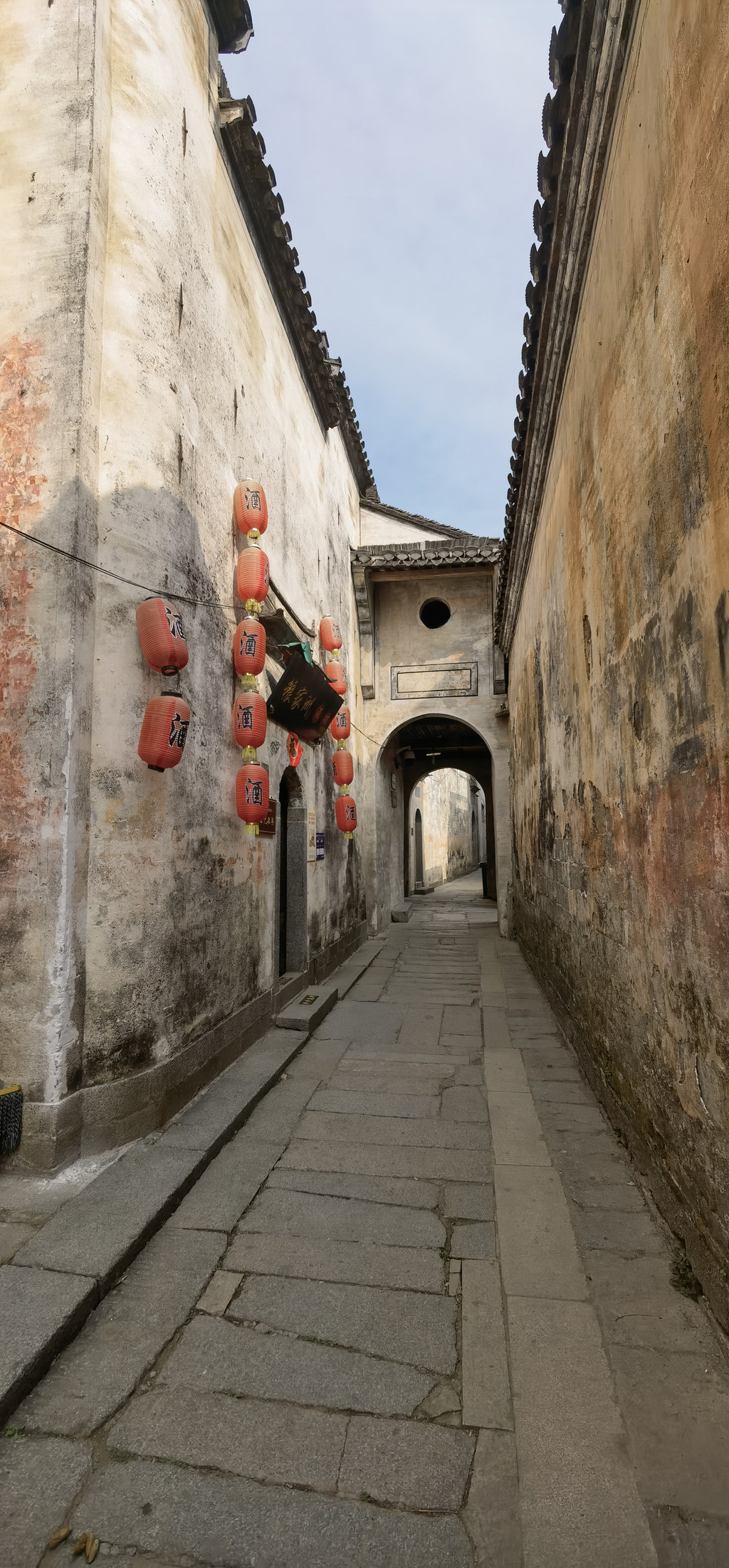 曲折错杂的街巷,似行走在迷宫里。老墙是用鸡蛋清、糯米浆、桐油、石灰等搅拌的,年代越久,风化得越好看。 听导游介绍说,村里曾被淹过,沿线墙上有水淹的痕迹。