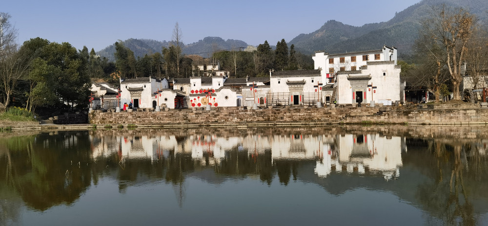 白墙黛瓦红灯笼,倒映在平静的水面上,错落有致,似人在画中游。