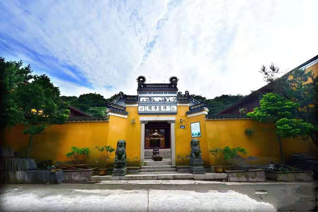 祥慧净院位于青鼓垒西南青石湾。据民国《普陀洛迦新志》等记载,始建于清乾隆年间(1736-1795),原名长慧庵。嘉庆间(1796-1820)僧广褔改建,改名祥慧庵。光绪十八年(1892)秋,徒化池等大修。有三圣宝殿3间,由隐秀庵旧大殿建材建成,中奉泥塑贴金“西方三圣”立像。廊间“重修祥慧净院碑”。东西厢楼各14间,西楼用作寮房,后面有念佛堂、斋堂。