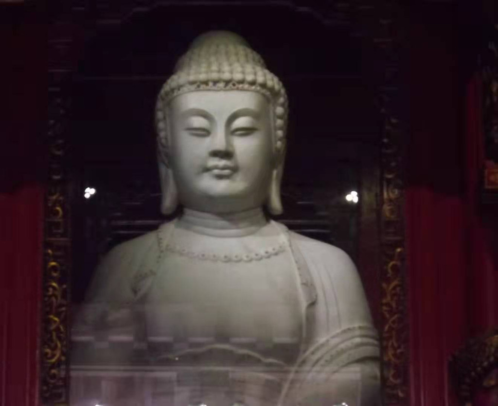 天王殿后的玉佛殿面阔三间,外加围栏,黄琉璃顶,是一座小巧玲珑的重檐歇山式建筑。大殿东西有钟楼和鼓楼各一,月台上有古柏一株,苍老劲健,西侧植罗汉松一株,围粗3米多,颇为罕见。玉佛殿原供有清光绪八年(1882年)普陀山僧人慧根赴印度礼佛,途经缅甸时请得的释迦牟尼玉佛像一尊,像高2米,玉色皎洁,雕琢极工。后来被毁,如今供奉的玉佛高1.3米,是1985年从北京永乐宫移来的。
