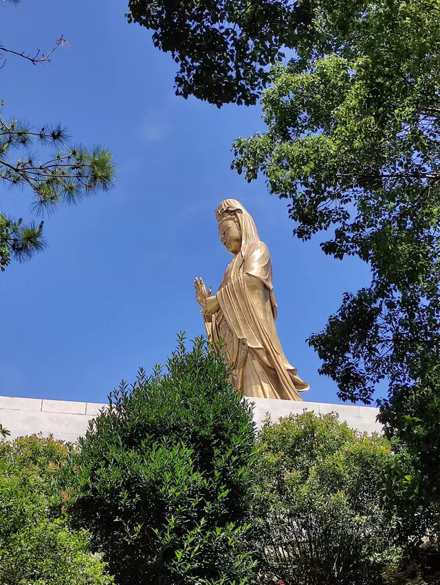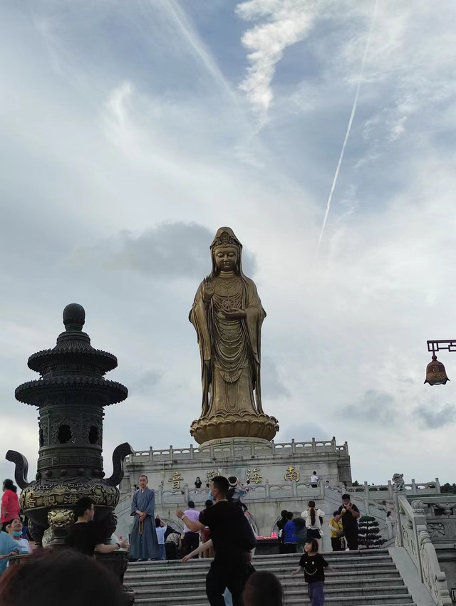 第一,到了普陀山,我们必须要去拜33米高的南海观世音菩萨,现在在海上就能远远的看见观音像,传说请了南海观世音菩萨镇守普陀山以来,每年的台风在普陀一带就会转向,不会袭扰宁波及其周边地区。