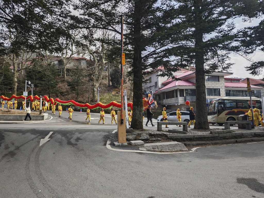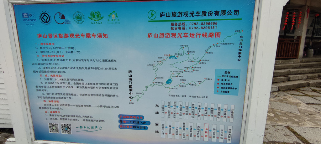 山上的旅游观光车分东线和西线,在站点排队扫码上车,一定提前告诉司机师傅下车站点,有的车不是完全按照站点停车的。