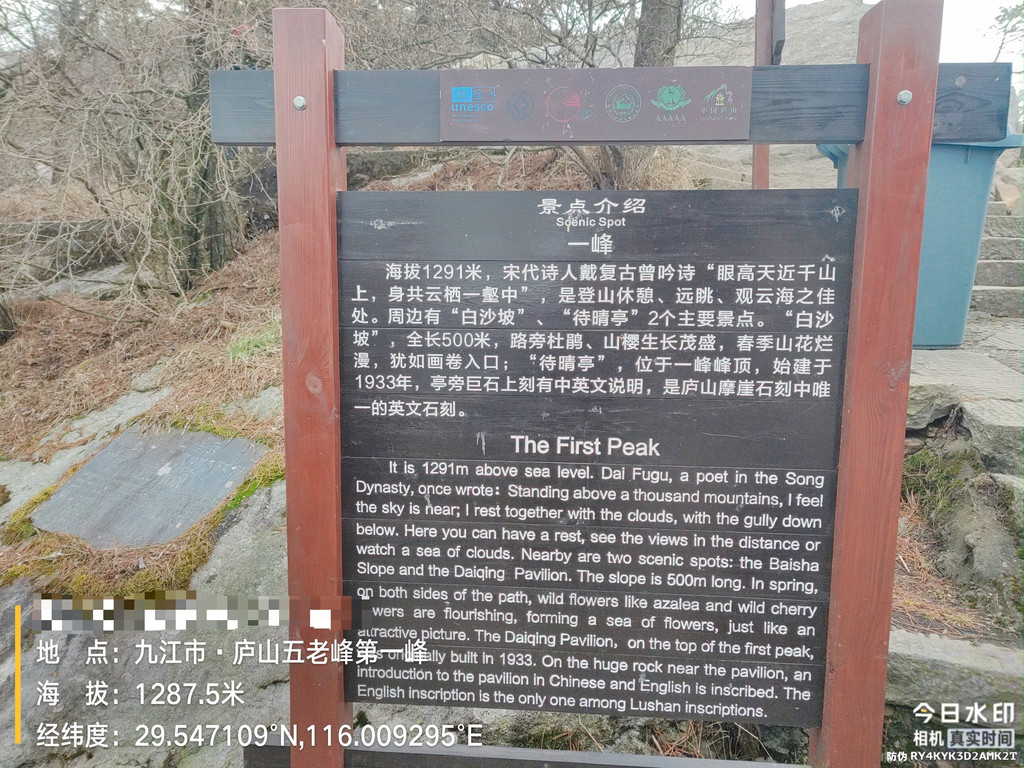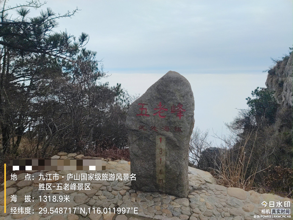 五老峰——是庐山主峰,海拔1436米。因山的绝顶被垭口所断,分成并列的五座山峰,看起来像席地而坐的五位老翁,故而得名。山势“雄、奇、险、秀”,为庐山观云海、日出、日晕、蜃景,俯瞰鄱阳湖的佳地。