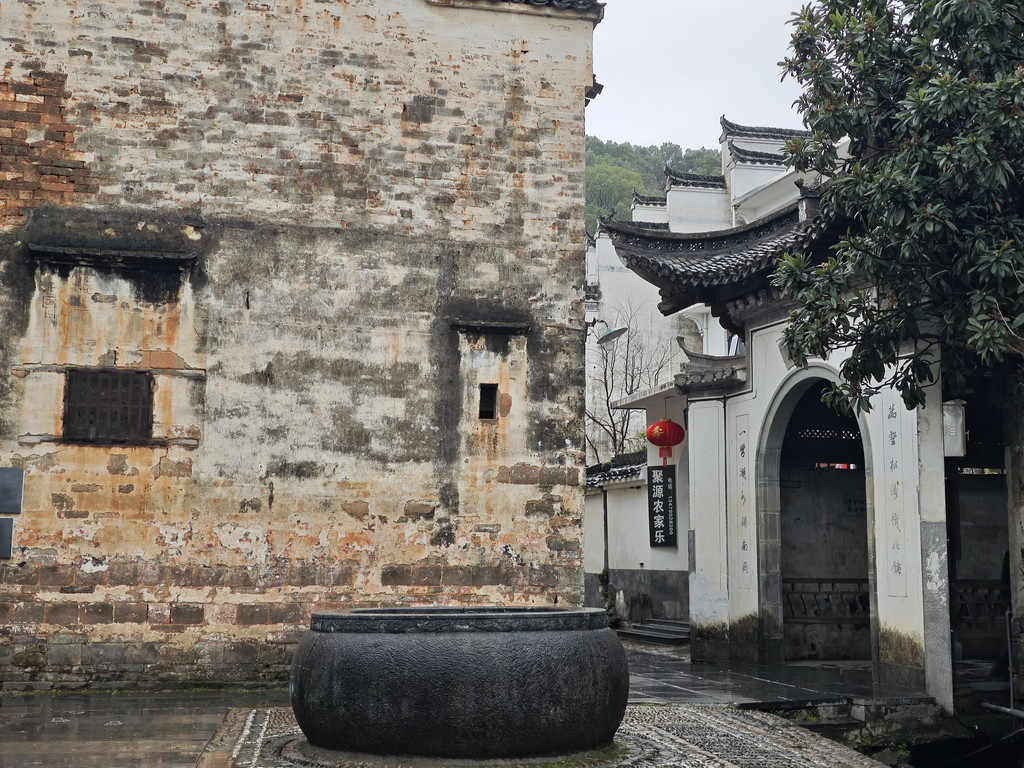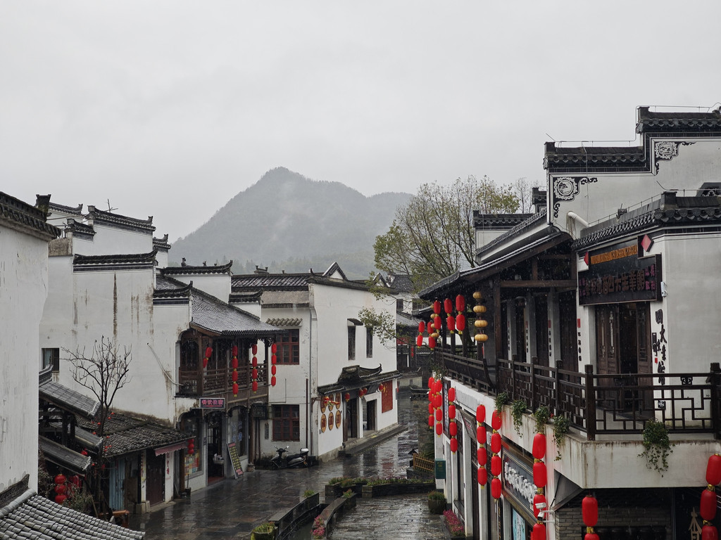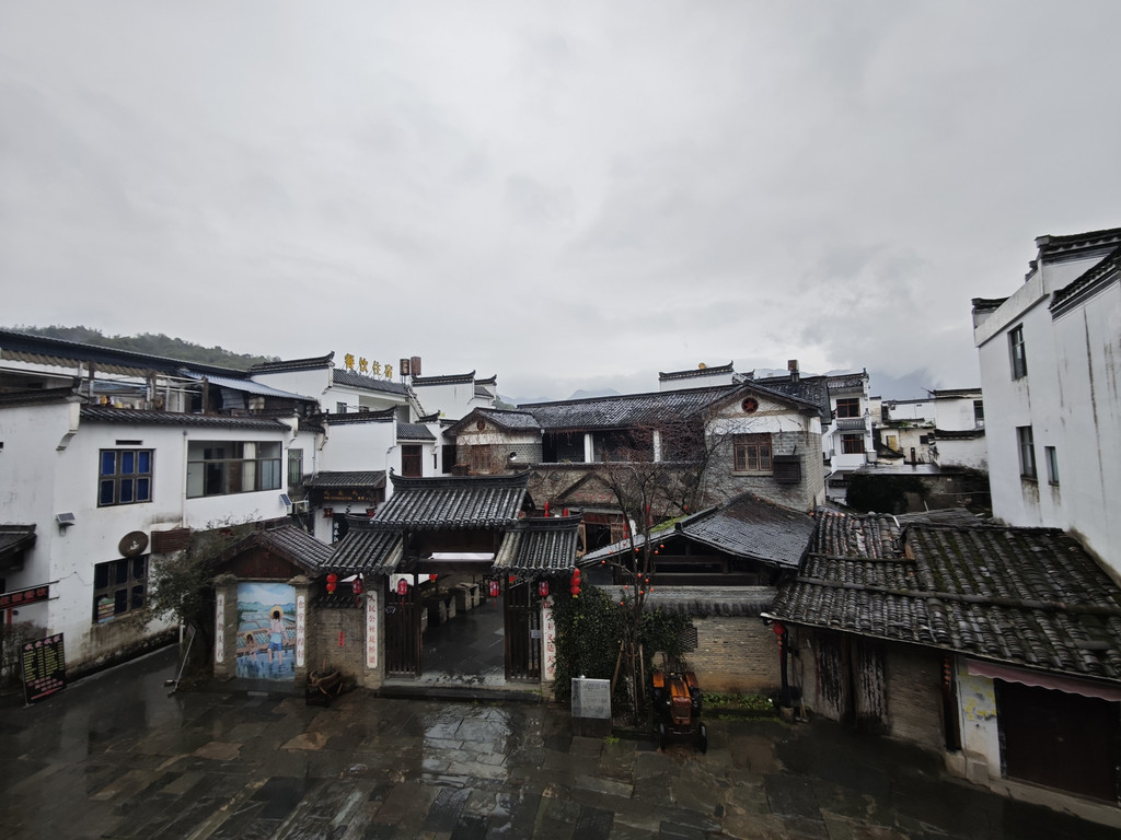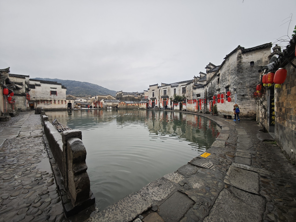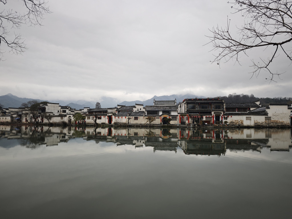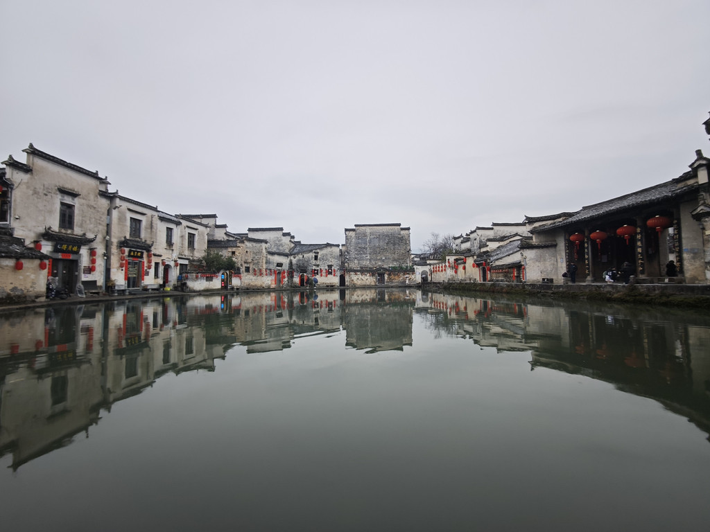 宏村景区位于中国安徽省黄山市黟县境内,是中国著名的古村落之一,是徽派古村中的代表,有“中国画里乡村”的美誉。来宏村一是看水利系统带来的水景,南湖、月沼是精华所在;二是看建筑上的徽派三雕,砖雕、石雕、木雕,人文景观与自然景观很好地融为一体。我们到宏村时天下着小雨,远山在雨雾里朦胧着,雾随着风飘动着,看到在灰蒙蒙的天色下,白色的墙壁、黑色的瓦顶,好像一幅水墨画。