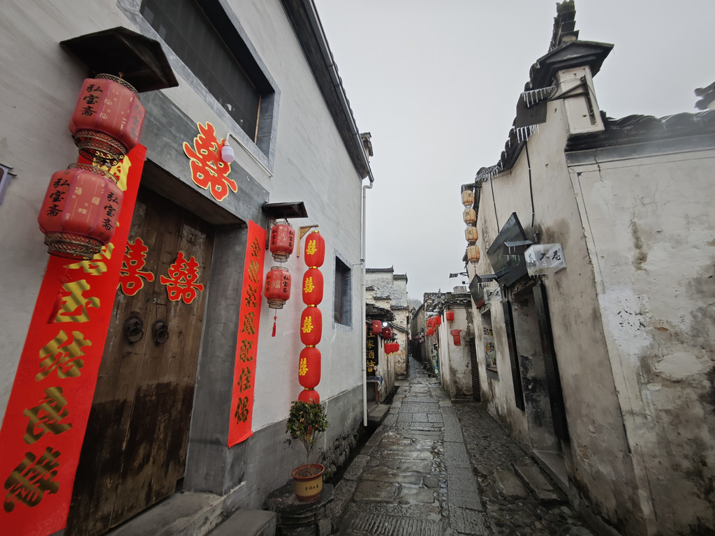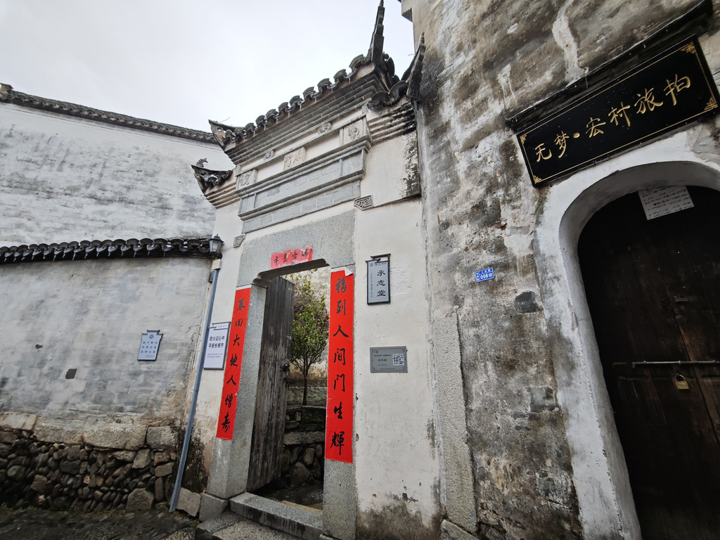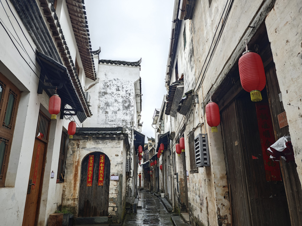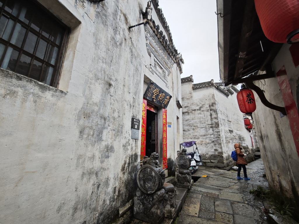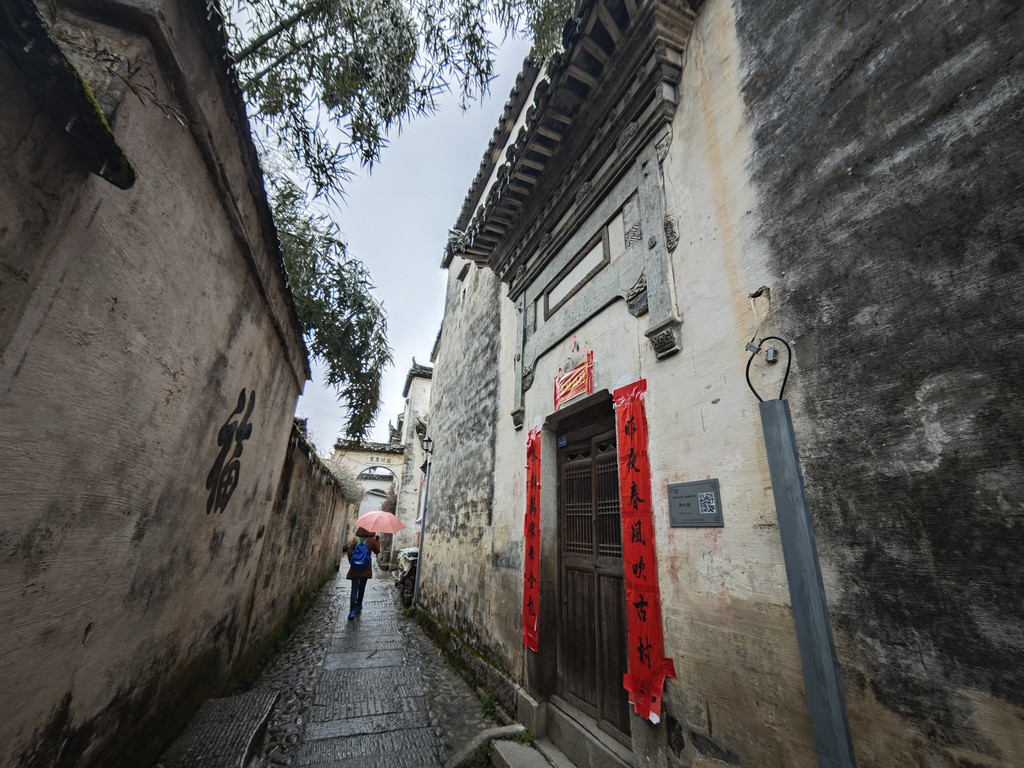 宏村景区位于中国安徽省黄山市黟县境内,是中国著名的古村落之一,是徽派古村中的代表,有“中国画里乡村”的美誉。来宏村一是看水利系统带来的水景,南湖、月沼是精华所在;二是看建筑上的徽派三雕,砖雕、石雕、木雕,人文景观与自然景观很好地融为一体。我们到宏村时天下着小雨,远山在雨雾里朦胧着,雾随着风飘动着,看到在灰蒙蒙的天色下,白色的墙壁、黑色的瓦顶,好像一幅水墨画。