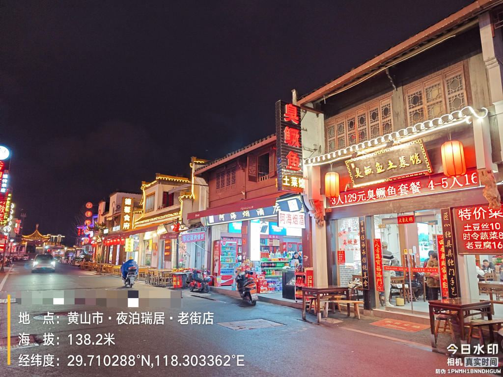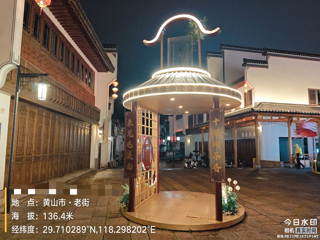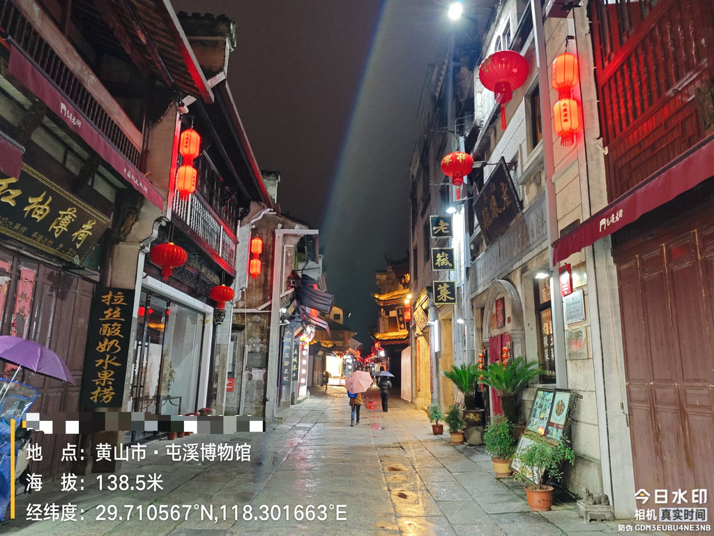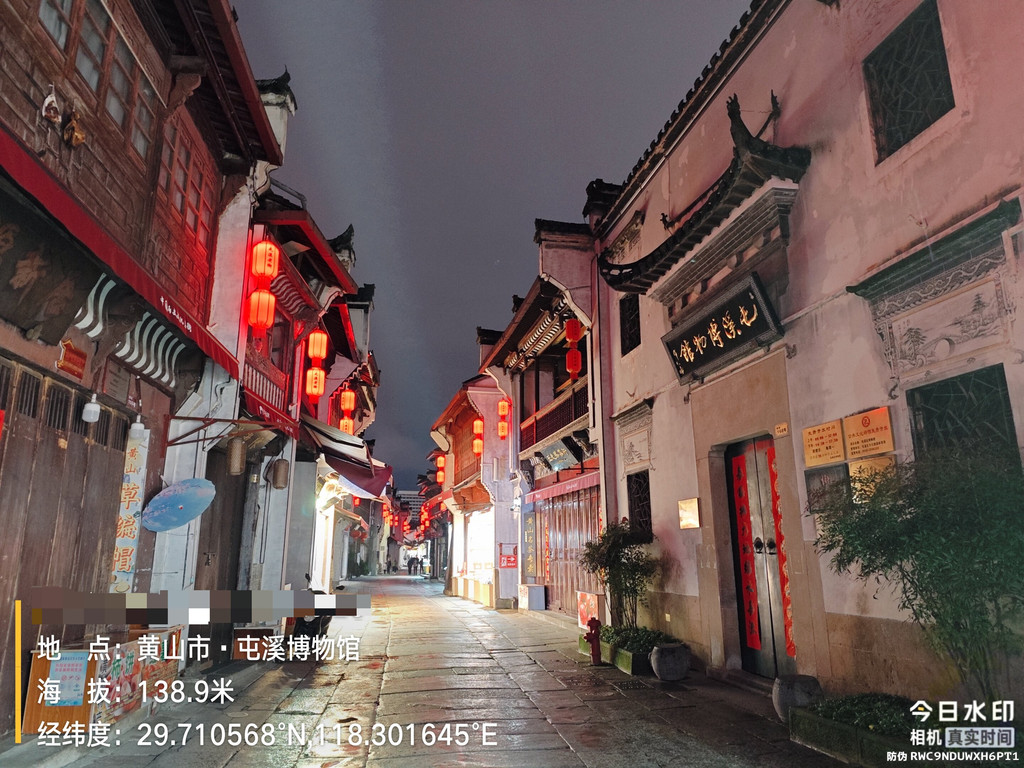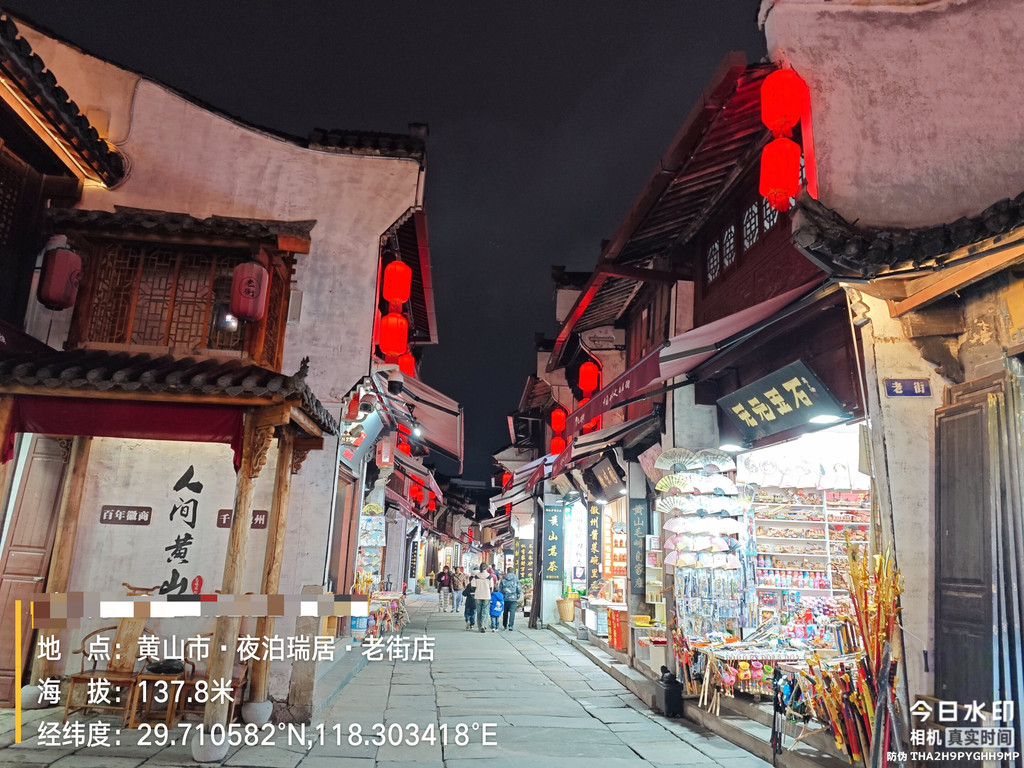 屯溪老街座落在安徽省黄山市屯溪区中心地段,北而背倚华山,南边溯临新安江,是一条保存完好的古老而繁华的步行商业街。屯溪作为中转的落脚点,我们也只住了一晚,观看了屯溪老街夜景。