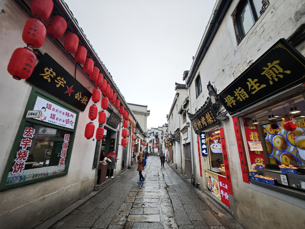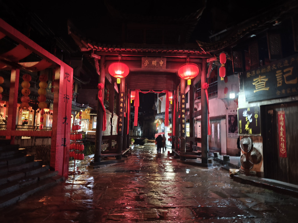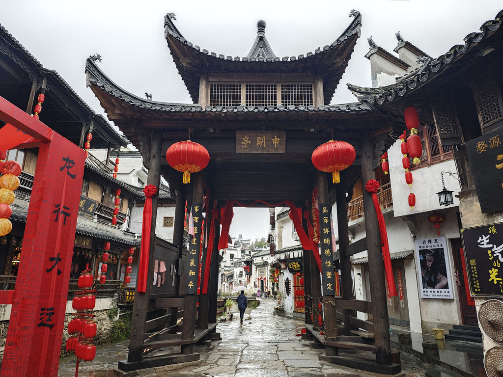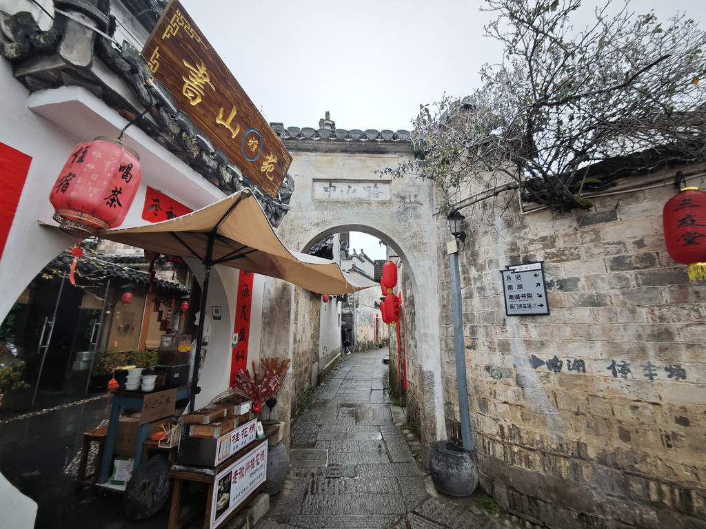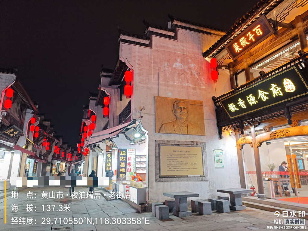 屯溪老街座落在安徽省黄山市屯溪区中心地段,北而背倚华山,南边溯临新安江,是一条保存完好的古老而繁华的步行商业街。屯溪作为中转的落脚点,我们也只住了一晚,观看了屯溪老街夜景。