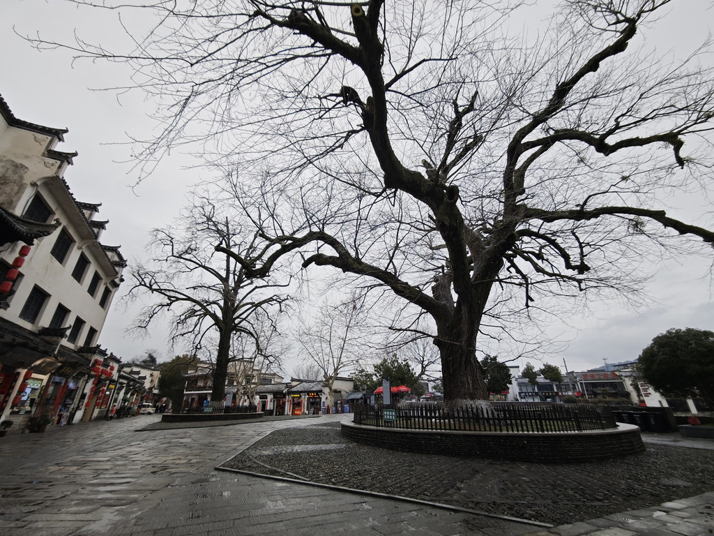 位于宏村村口的两棵有500年树龄的大树,一棵叫古枫杨,当地叫红杨树;一棵叫银杏树,当地叫白果树。这两棵大树是这牛形村的「牛角」,宏村的「风水树」,是一种吉祥的象征。按照这里过去的风俗,村中老百姓办喜事,新娘的花轿要绕着红杨树转个大圈,这预示着新人百年好合,红福齐天;高寿老翁辞世办丧事,要抬着寿棺绕着白果树转个大圈,寓示着子孙满堂,高福高寿。