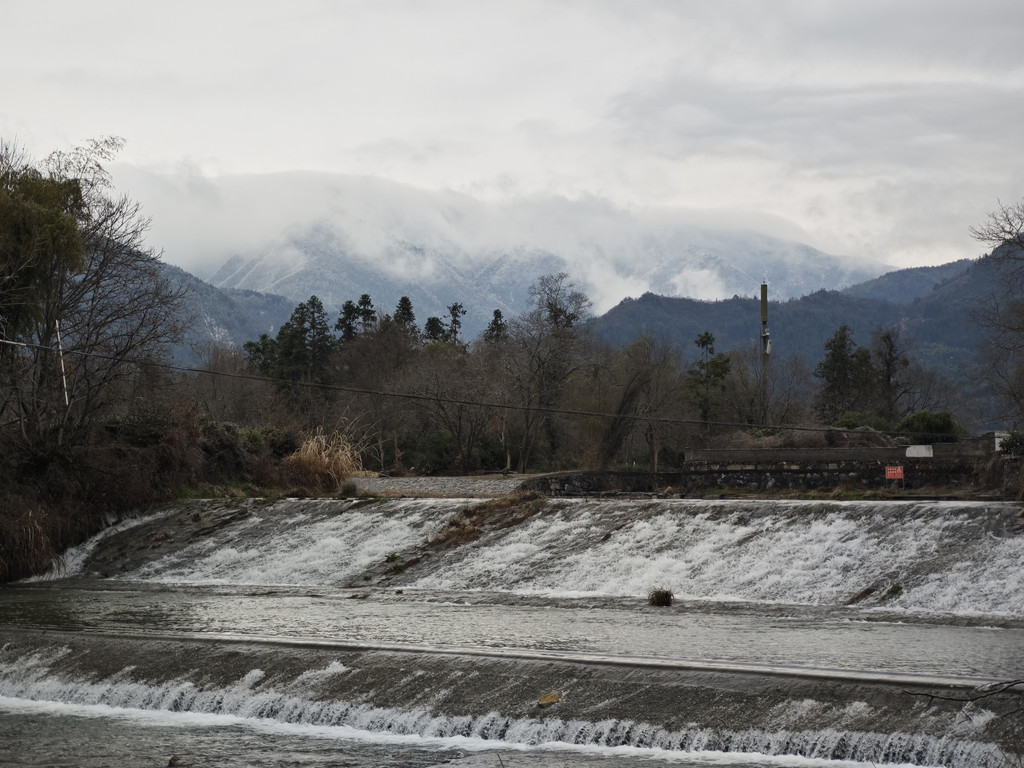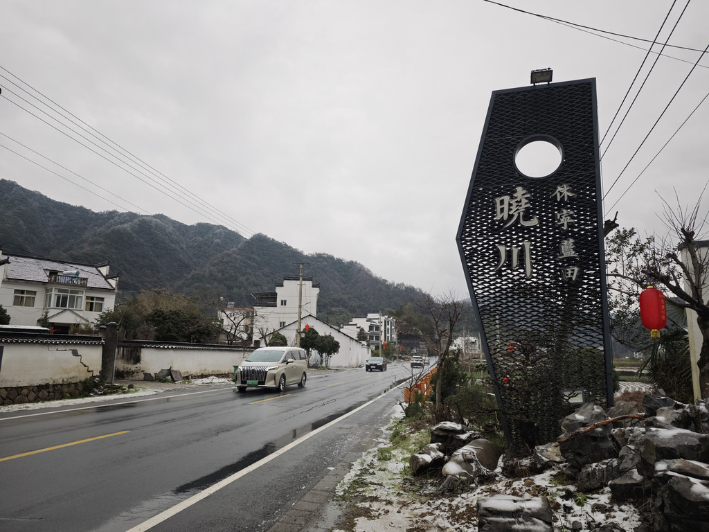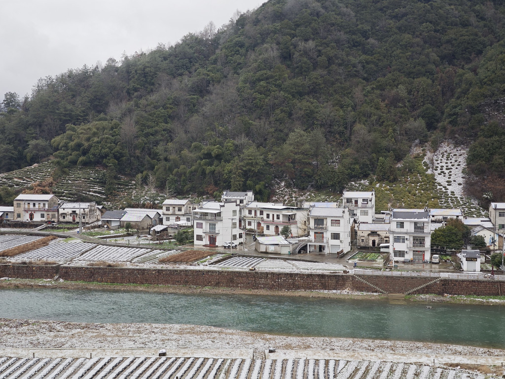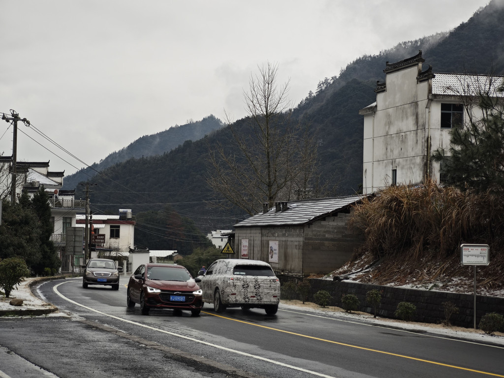 屯溪去往宏村国道旁边的小村庄,昨夜下了一场雨夹雪,大地覆盖一层白色。