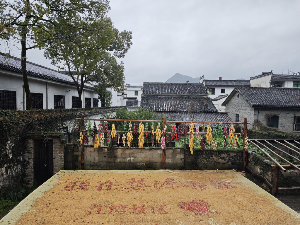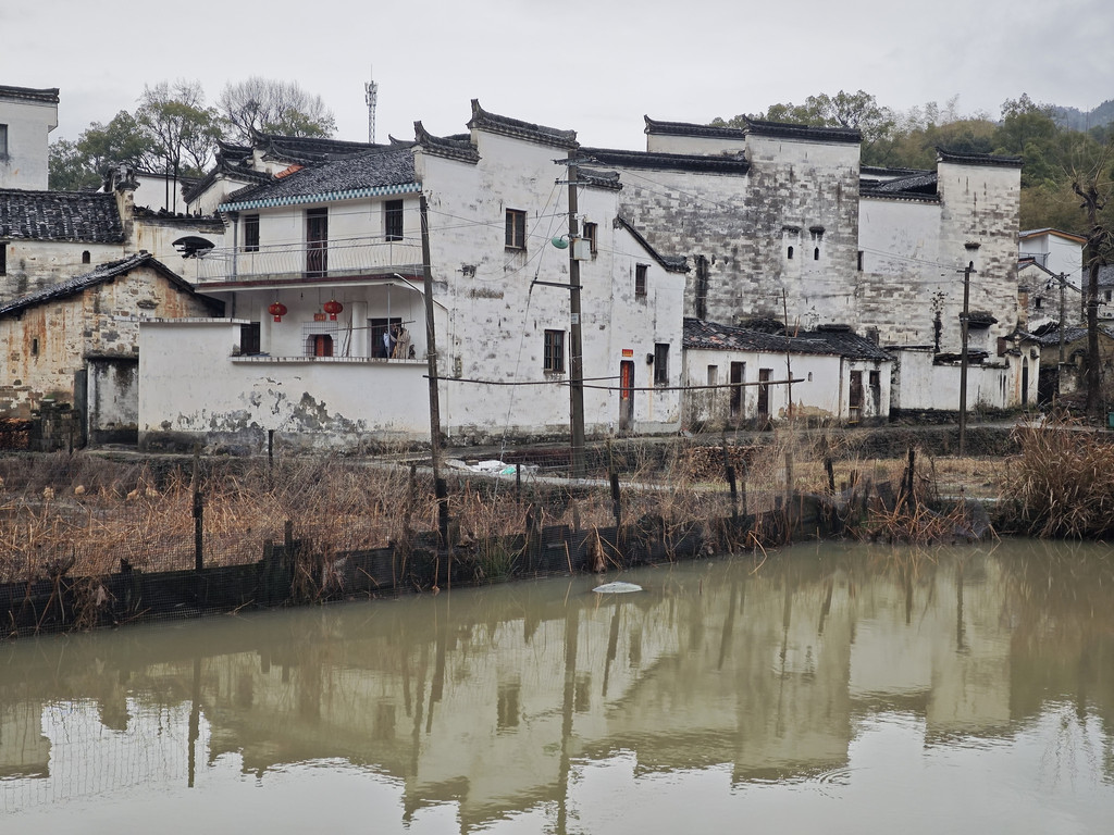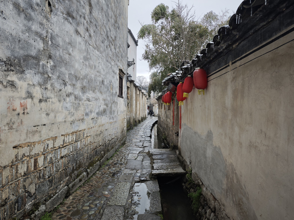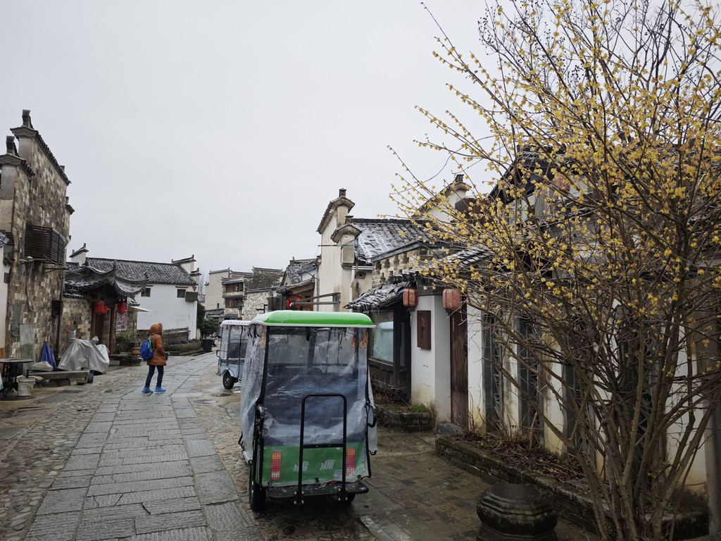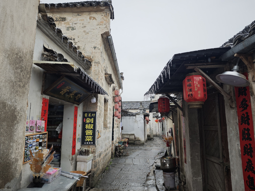 屯溪去往宏村国道旁边的小村庄,昨夜下了一场雨夹雪,大地覆盖一层白色。