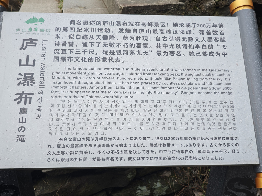 庐山是一座集风景、文化、宗教、教育、政治为一体的千古名山。以雄、奇、险、秀闻名于世,素有“匡庐奇秀甲天下”之美誉。