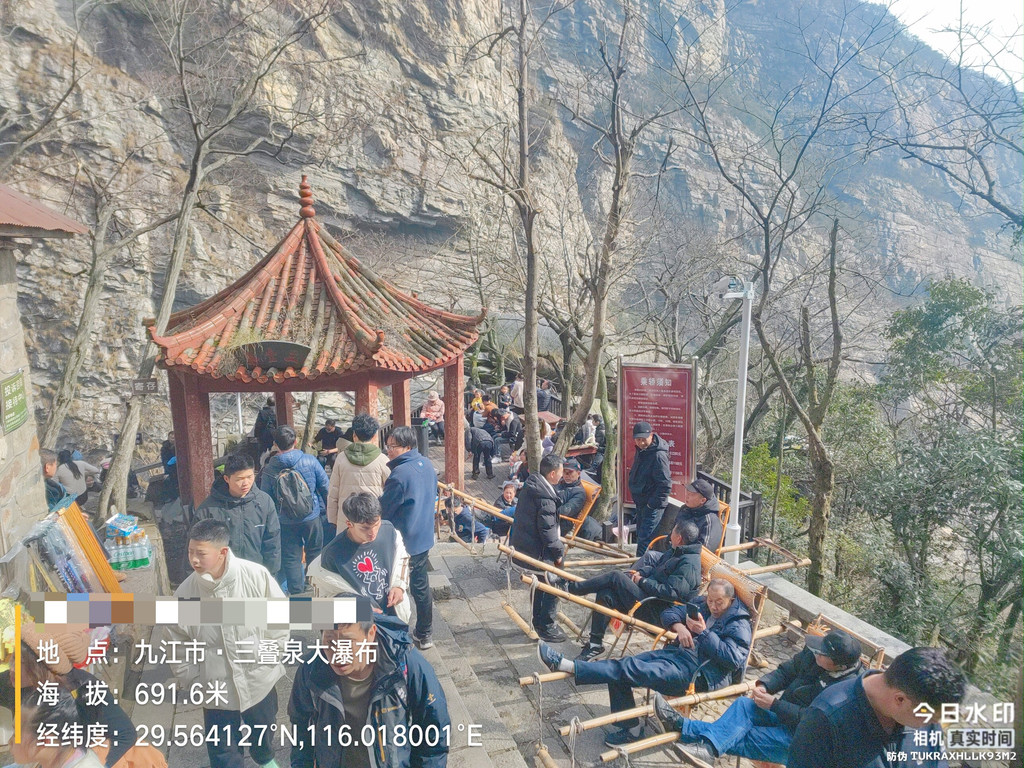 从庐山山顶游览三叠泉的游客,到这个三叠泉门票检查站开始还要向下走1300多台阶去往三叠泉,游览结束后,可以原路返回再爬1300多级台阶,再走路或者坐缆车回到山上的三叠泉停车场。